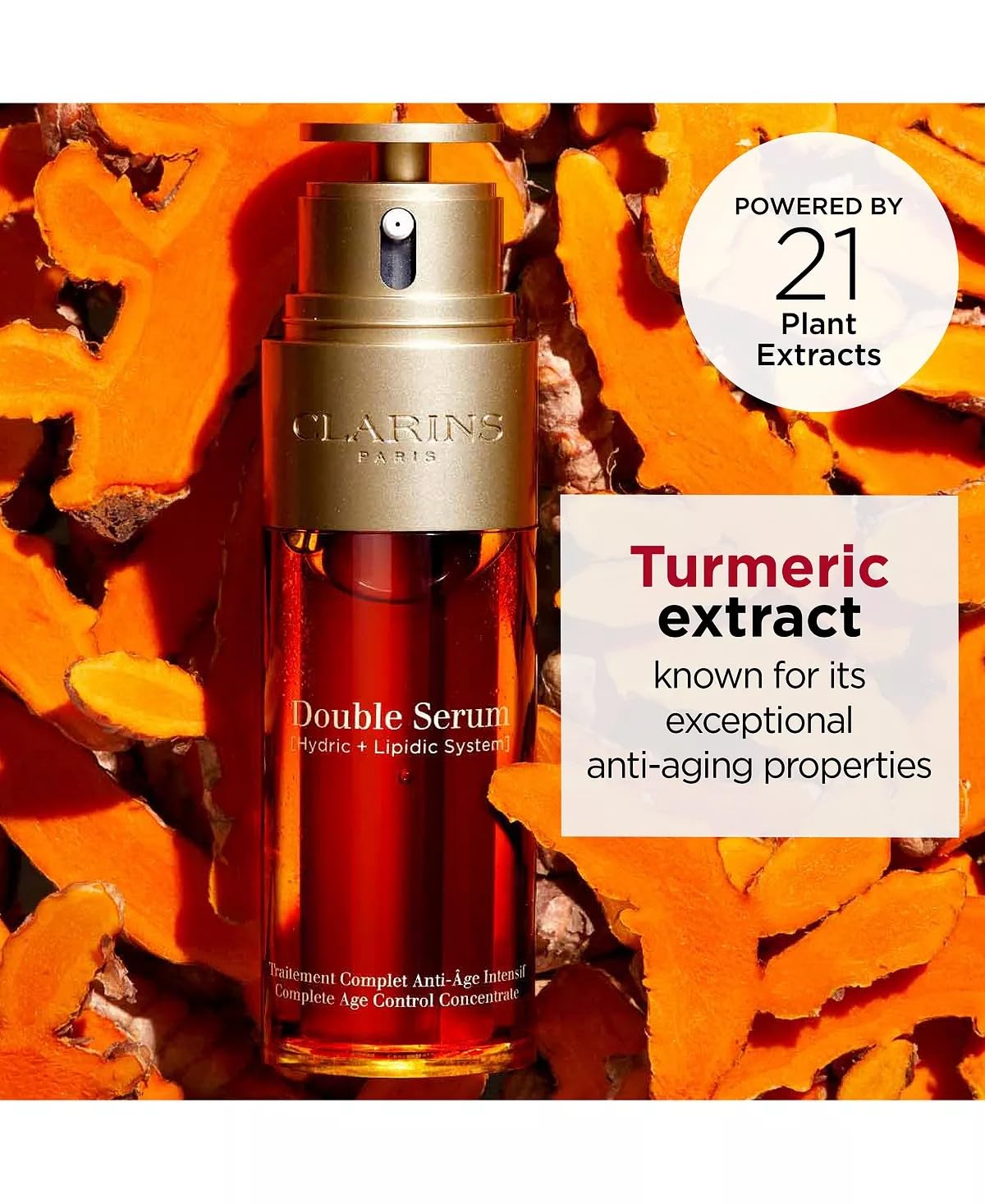 Achieve visibly firmer, smoother, more radiant skin in just 7 days.* With 21 plant extracts including Turmeric, this dual serum delivers the perfect ratio of water & oil soluble ingredients that combine into one powerful serum. Daily serum to deliver exceptional anti-aging benefits. Visibly firms, targets wrinkles and revives radiance Apply after your eye treatment and before your moisturizer. Turn the dial to customize dosage for your skin's needs, then press the pump, mix both phases in the palms of your hands and apply morning and/or evening to face and neck
