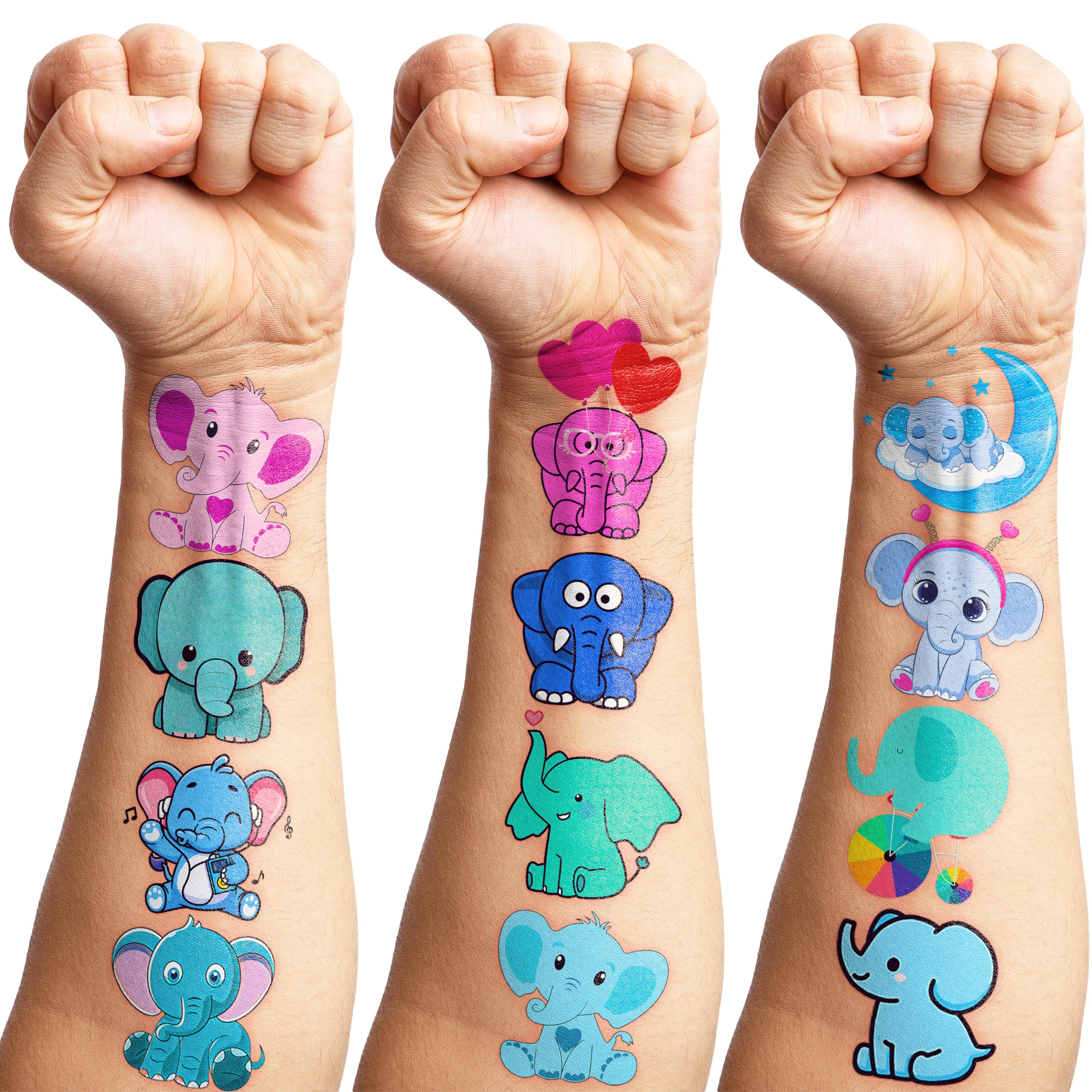 Generic Elephant Temporary Tattoos Baby Showers Birthday Party Supplies Favors Decorations Super Cute 82 PCS Fake Tattoos Stickers for Boys Girls School Classroom Rewards Gifts Ideal
