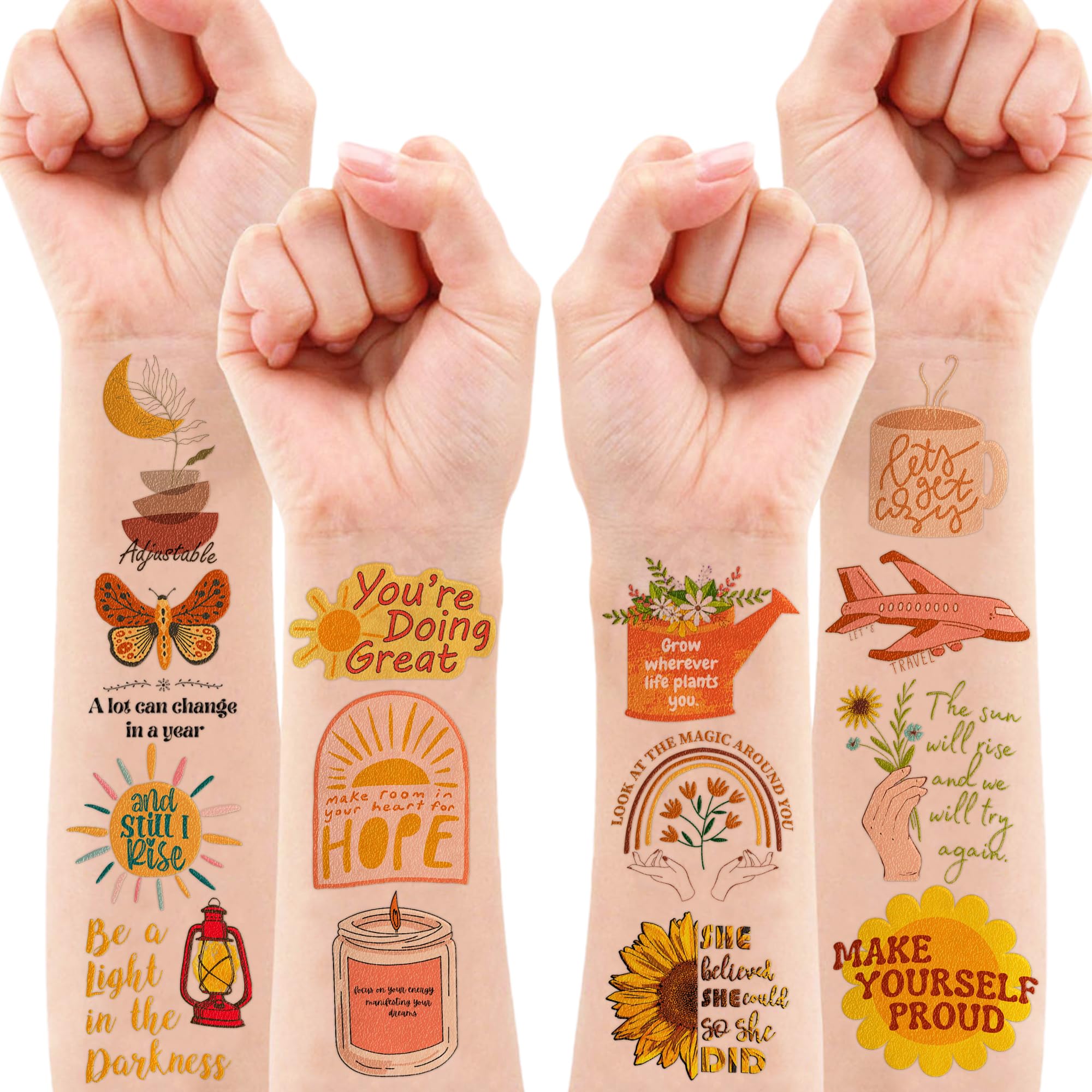 Generic Motivational Temporary Tattoos Quote Birthday Party Supplies Favors Decorations Super Cute 96PCS Fake Tattoos Stickers for Boys Girls School Classroom Rewards Gifts Ideal Halloween