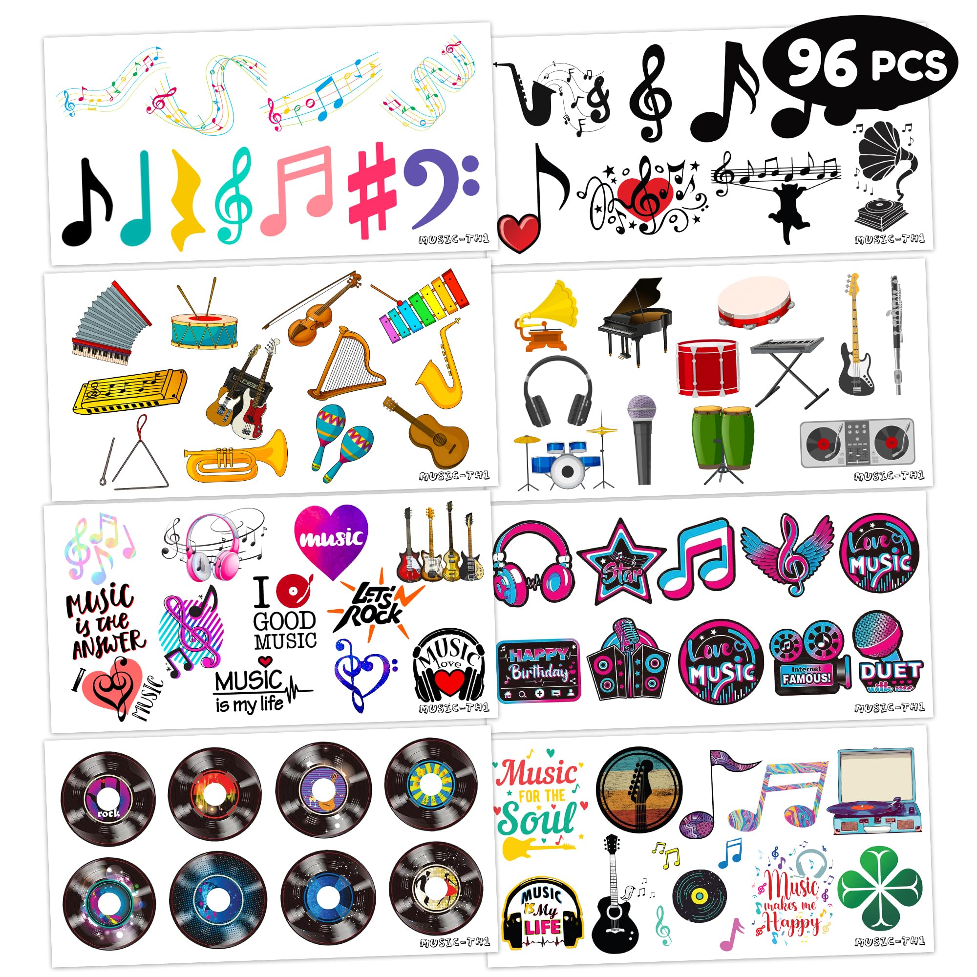 Generic Music Temporary Tattoos Birthday Party Supplies Favors Decorations Super Cute 96PCS Fake Tattoos Stickers for Boys Girls School Classroom Rewards Gifts Ideal Halloween