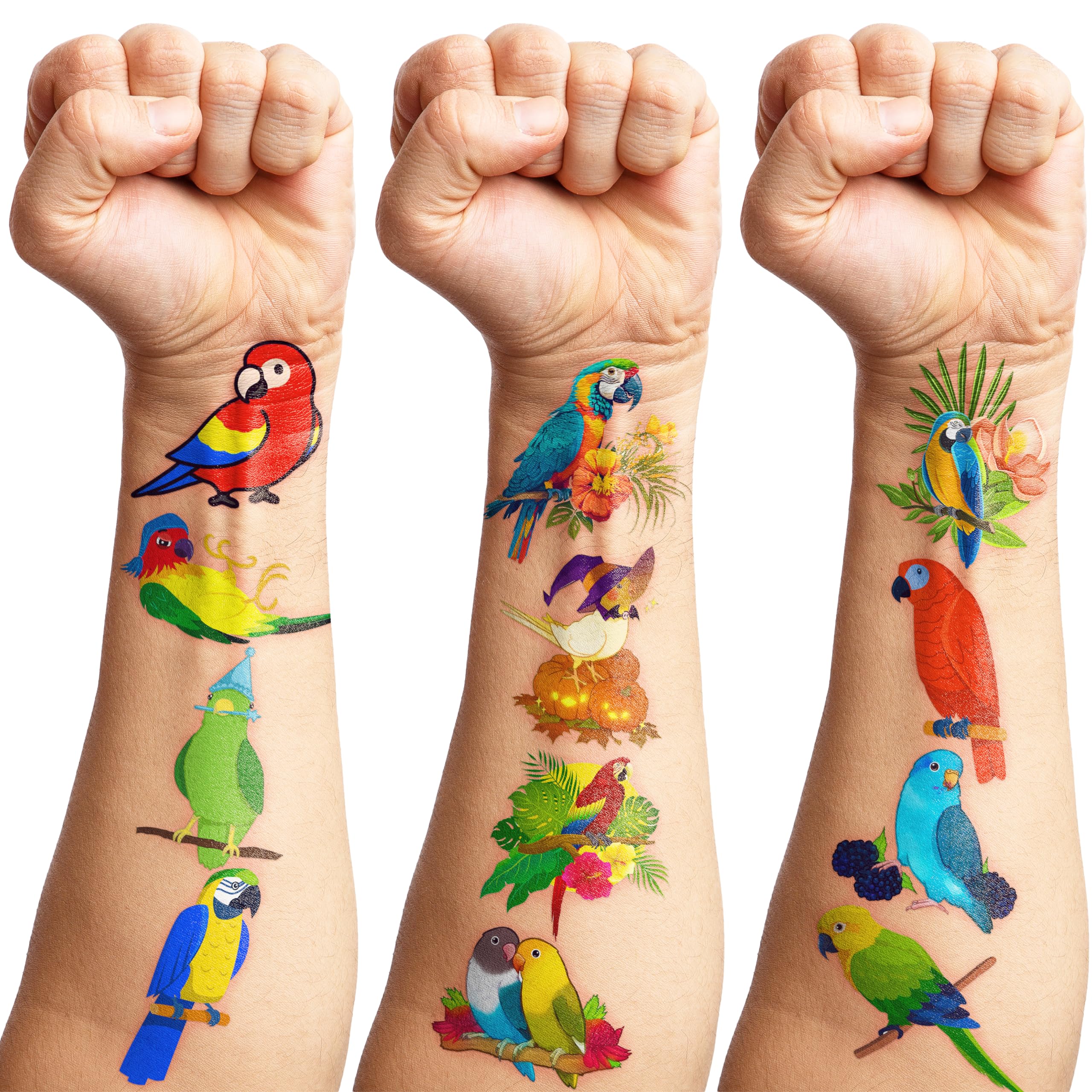 Generic Parrot Temporary Tattoos Birthday Party Supplies Favors Decorations Super Cute 96PCS Fake Tattoos Stickers for Boys Girls School Classroom Rewards Gifts Ideal Halloween