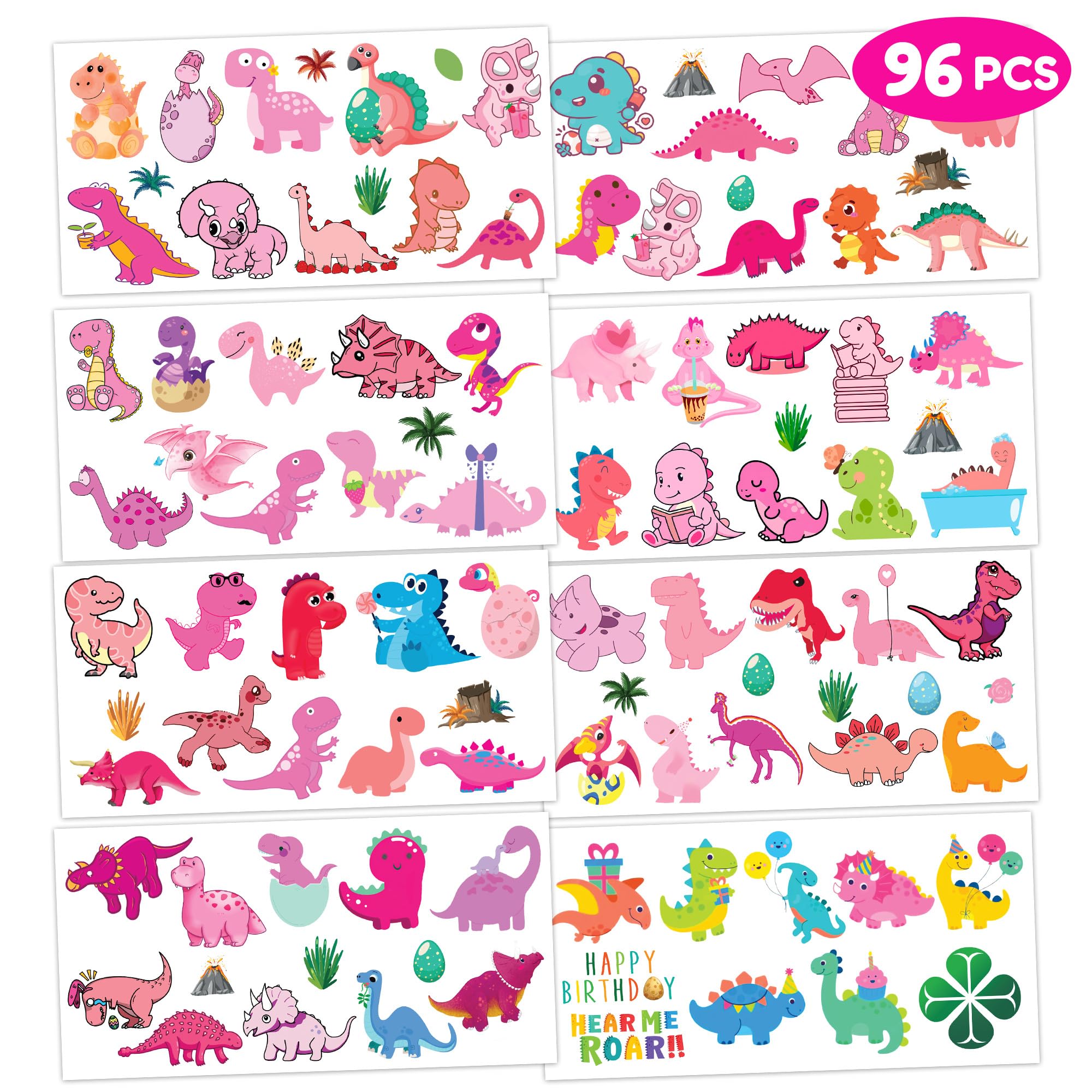 Generic Pink Dinosaur Temporary Tattoos Birthday Party Supplies Favors Decorations Super Cute 96PCS Fake Tattoos Stickers for Boys Girls School Classroom Rewards Gifts Ideal Halloween