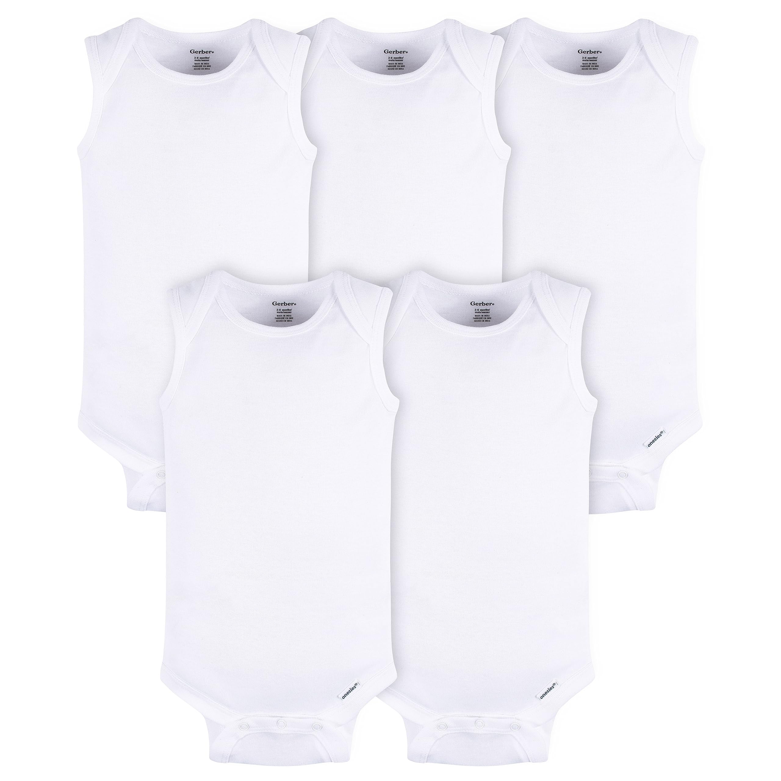 Gerber Unisex Baby Multi-Pack Sleeveless Onesies Bodysuit White 6-9 Months