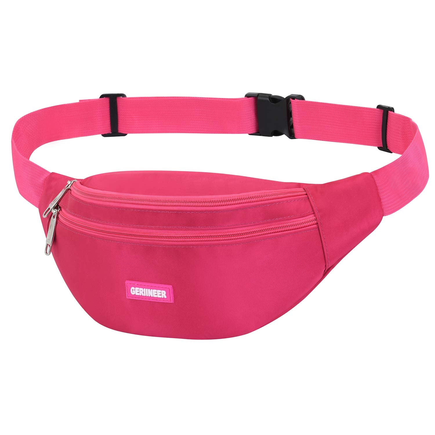 GERIINEER Bumbags and Fanny Packs for Women Ladies Men Kids Waterproof Bum Waist Bag with Bilateral Adjustment Belt 4 Zip Pockets for Hiking Travel Outdoor Activities