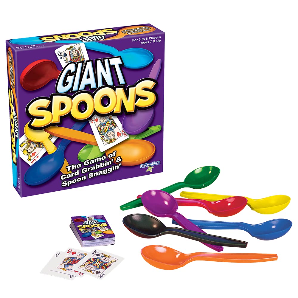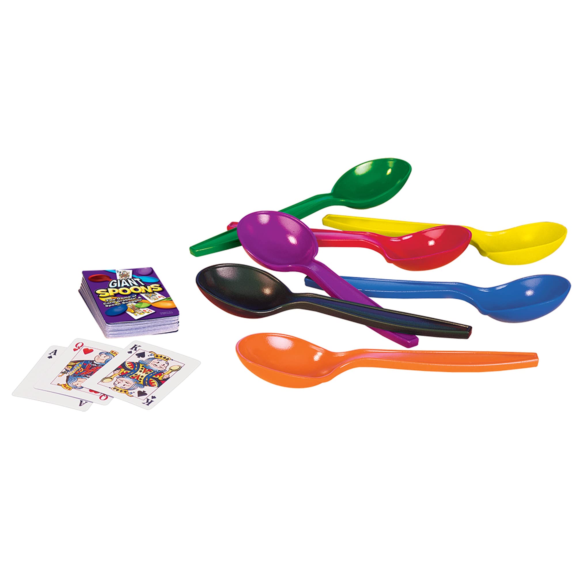 Product DescriptionPlay this classic card game that's bigger than life! Race to get four of a kind…and you'd better snag a spoon if you want to stay in the action! Each round somebody will be eliminated, so be sharp, but be thankful that the spoons aren't!From the ManufacturerGiant Spoons The Game of Card Grabbin and Spoon Snaggin. Play this classic card game that's bigger than life! Race to get four cards of a kind... then you'd better snag a giant spoon fast if you want to stay in the action! Each round the slowest player will be left empty-handed and is out of the game.