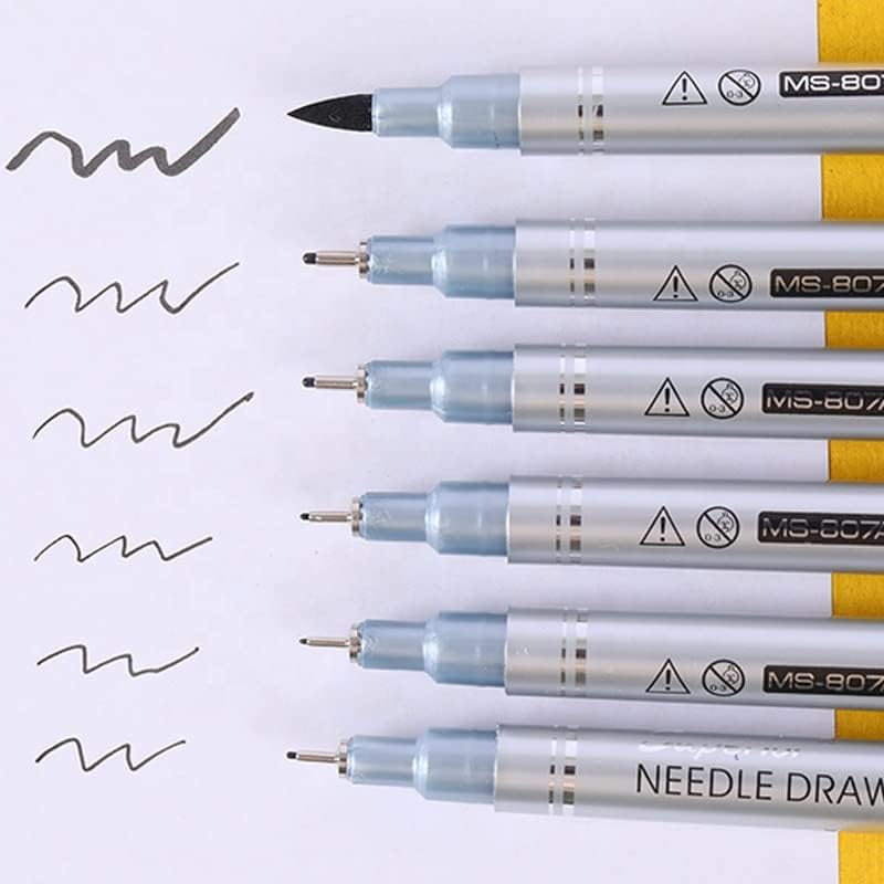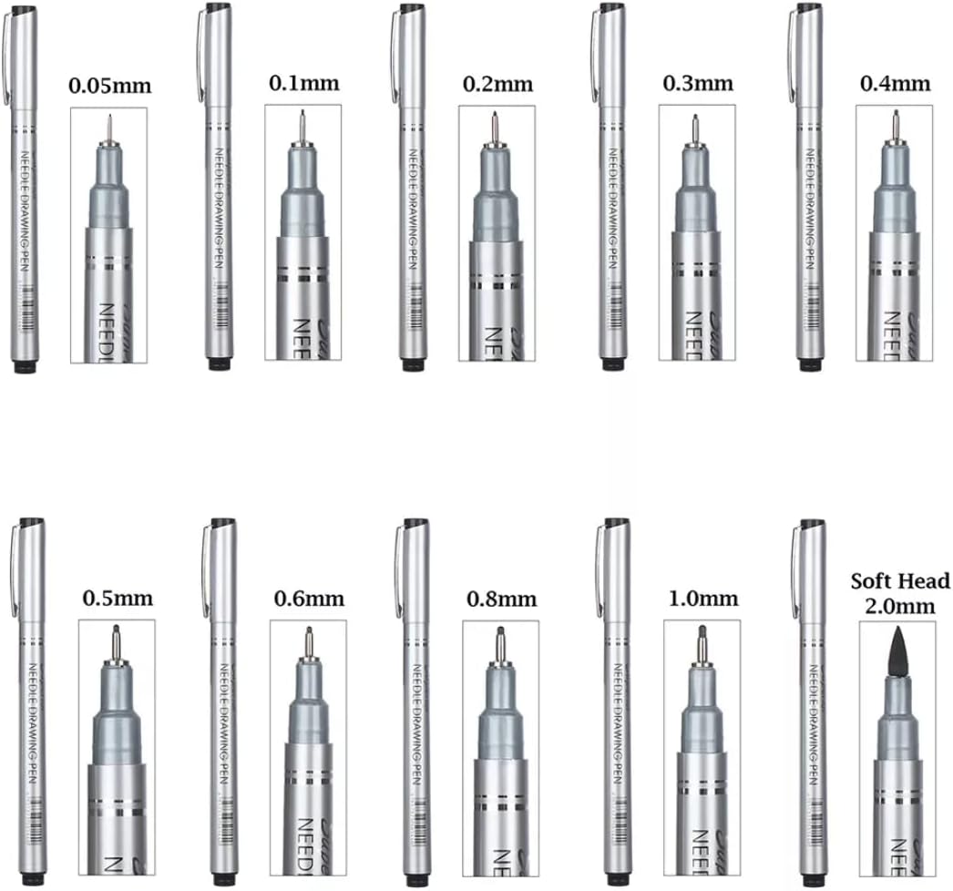 These GifMor Technical Needle Drawing System Pens are perfect for a variety of work including writing, drawing, drafting and illustrating. The metal reinforced nibs are suitable for both ruling and using with templates as they will not break or damage the fibre tip. The ink is fadeproof and water and smudge-resistant, making it great for long lasting drawings. The set includes 7 fineliners and 1 brush pen.