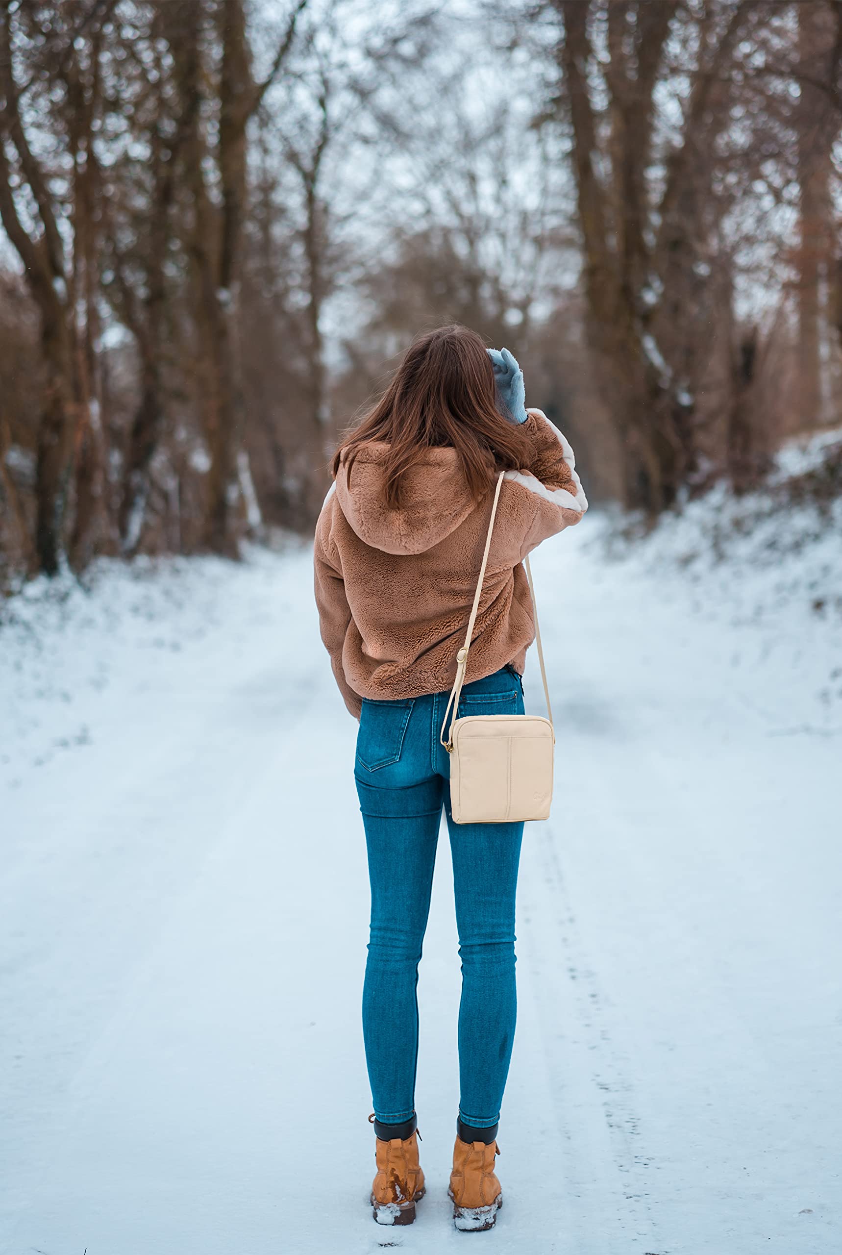 Gigi - Women’s Small Leather Cross Body Handbag - Shoulder Bag with Long Adjustable Strap - OTHELLO 22-29 - with heart keyring charm - Black