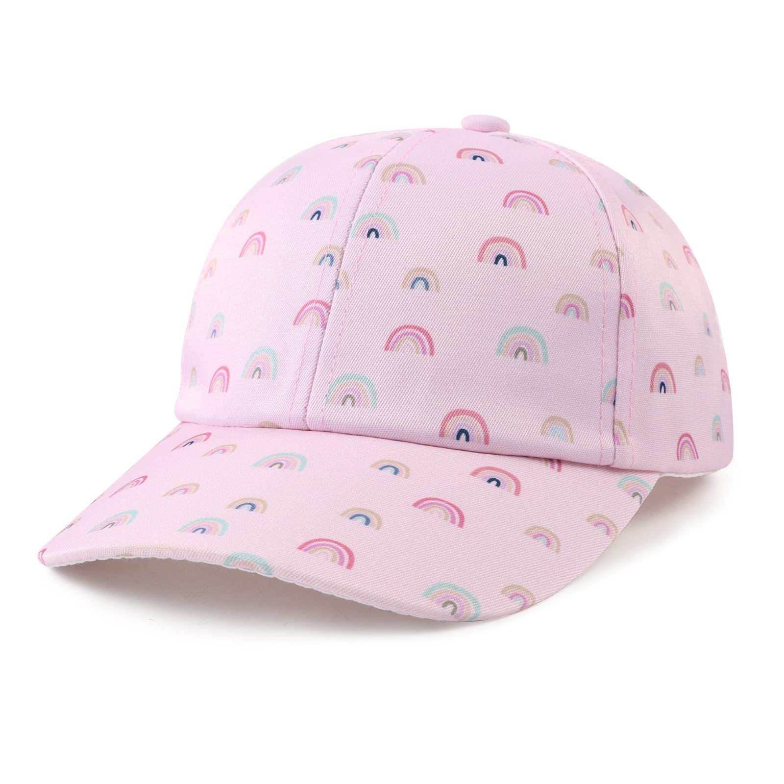 Girls Baseball Cap Kids Cute Sun Hat Adjustable Trucker Hats Toddler Rainbow Floral Ponytail Caps Spring Summer (Rainbow Pink, 4-8 Years)