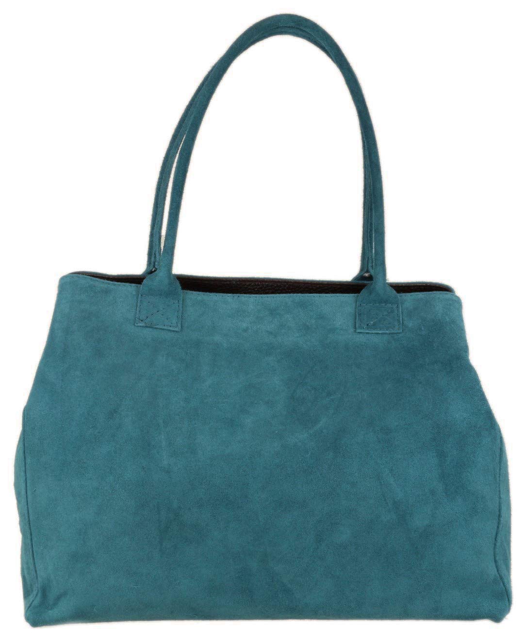Girly Handbags Womens Expandable Italian Suede Leather Shoulder Bag (Dark Teal)