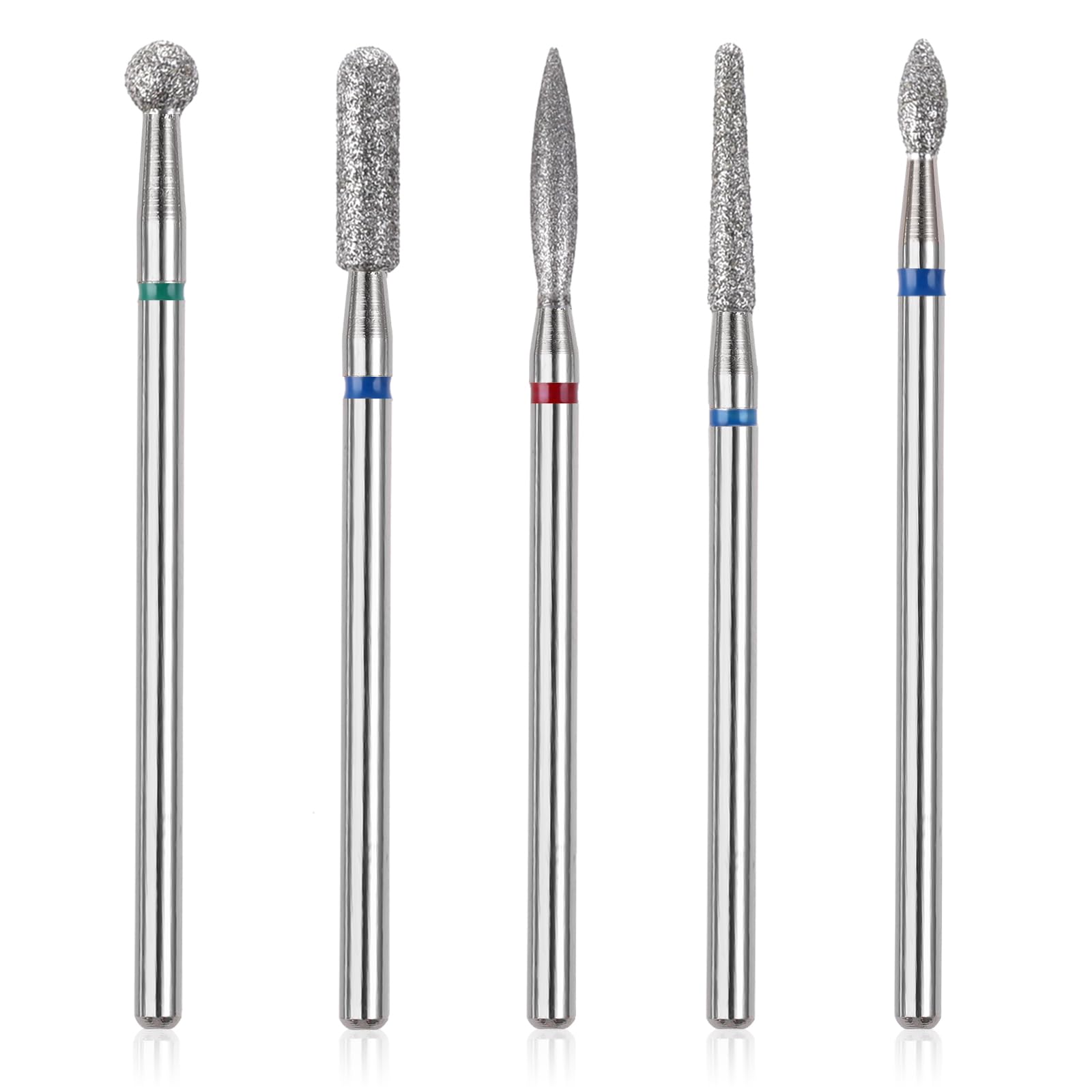 Gjinxi 5pcs Nail Drill Bits Set, Manicure Drill Bits, Professional Nails Diamond Bits Russian Cuticle Remover Bits Kit, Cylinder/Ball/Flame/Needle Cuticle Bit for Acrylic Gel Nails Home Salon