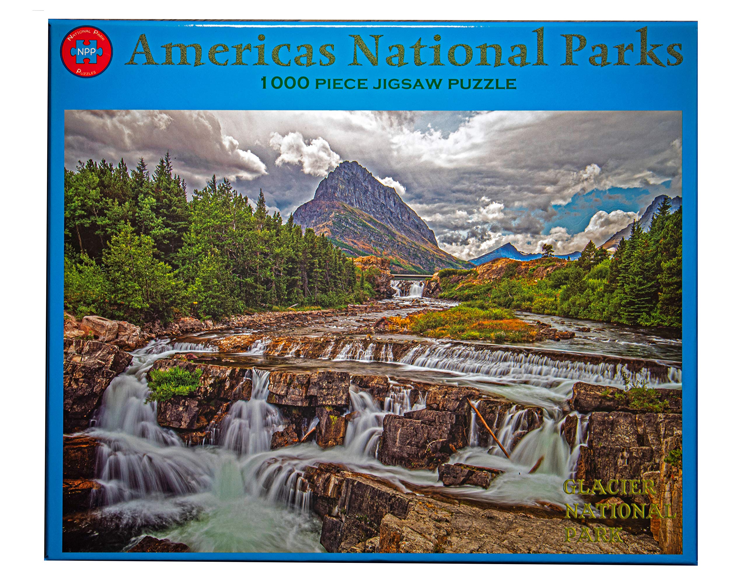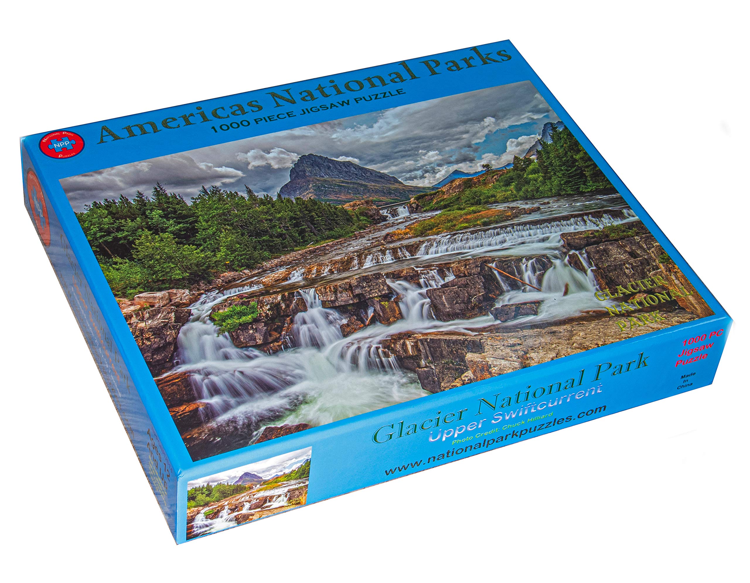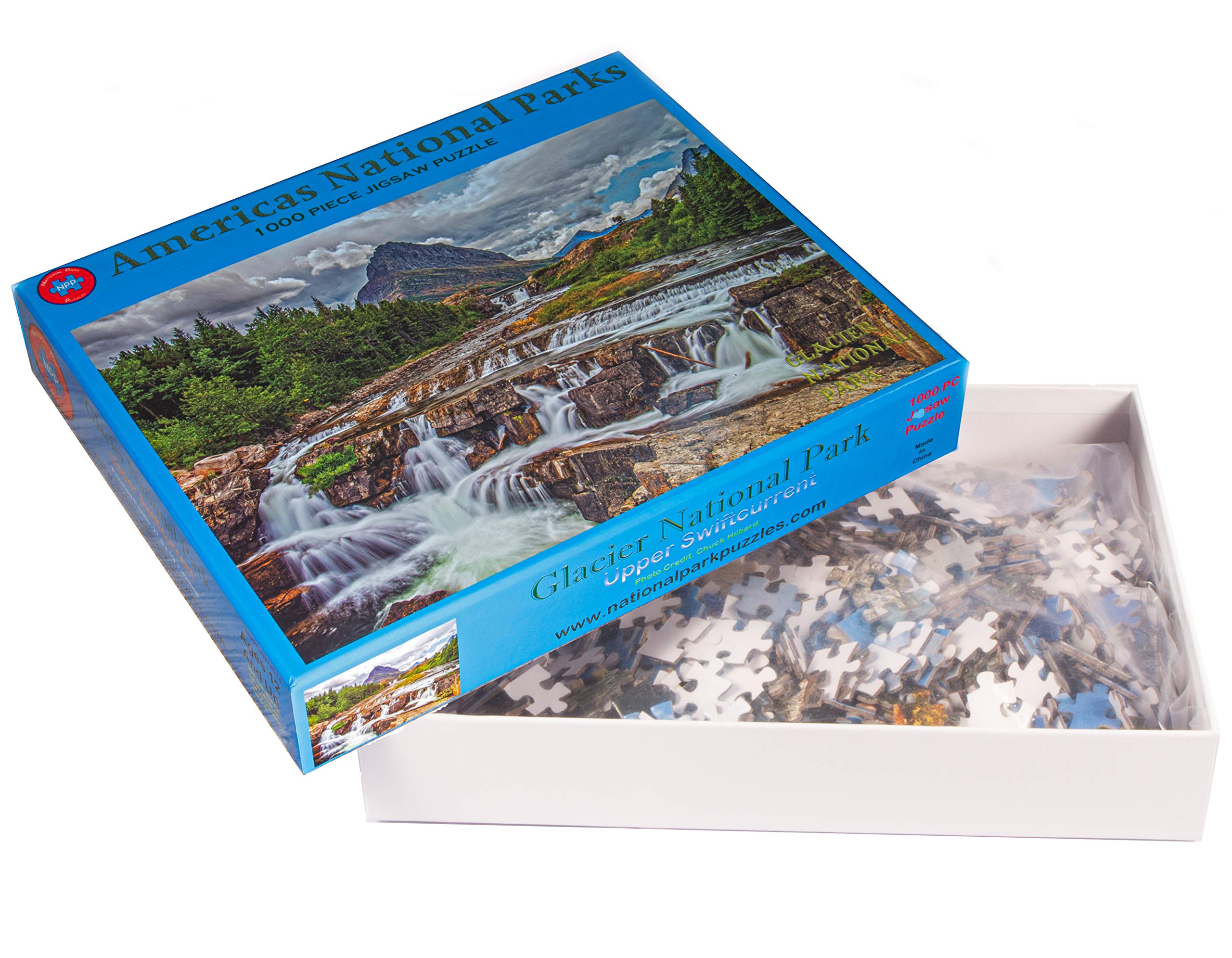 Beautiful image of Upper Swiftcurrent Falls at the Many Glacier area of Glacier National Park. All of our puzzles are 27.6 x 19.7 inches 1000 piece, differing piece shape to produce an interlock so tight you can pick it up and flip it over without losing a piece, Grade A chipboard 1/16 inch thick for sturdy, durable pieces that wont bend or break, and a premium glossy print making a puzzle you will love to hang on your wall when you are done!