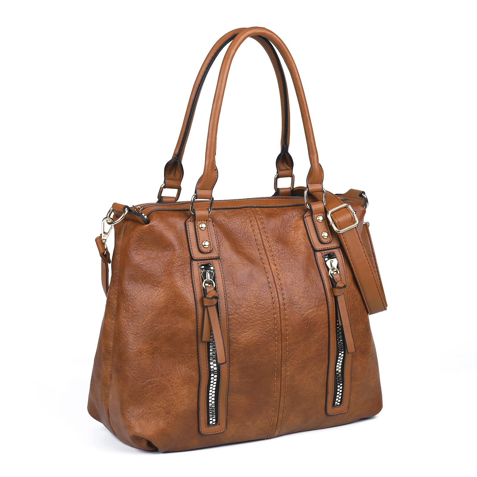 ?Material?Made of good quality synthetic leather fabric and polyester lining with durable golden hardware, highly anti-scratch and tear-resistant. Durable and smooth Top Zipper Closure. | ?Dimensions? 40cm x 20cm x 33cm/15.7in x 7.9in x 13in (LxWxH). | ?Large capacity?This women shoulder bag suits most of items such as 13-inch Macbook Pro, 9.7-inch iPad, A4 Magazine, Book, Umbrella, Wallet, Water bottle, iPhone, Cosmetics.,etc. | ?Multi-function?Adjustable long shoulder strap, can be used as handbag, shoulder bag and cross-body bag as you like.Perfect for dating,shopping,working,traveling, vacation, party and other occasions and keep your daily items well organized. | ?Customer Service?We attach great importance to product quality and customer satisfaction. If you are not satisfied with the tote, please do not hesitate to contact us.We will respond you within 24 hours and solve your problem in the best way.