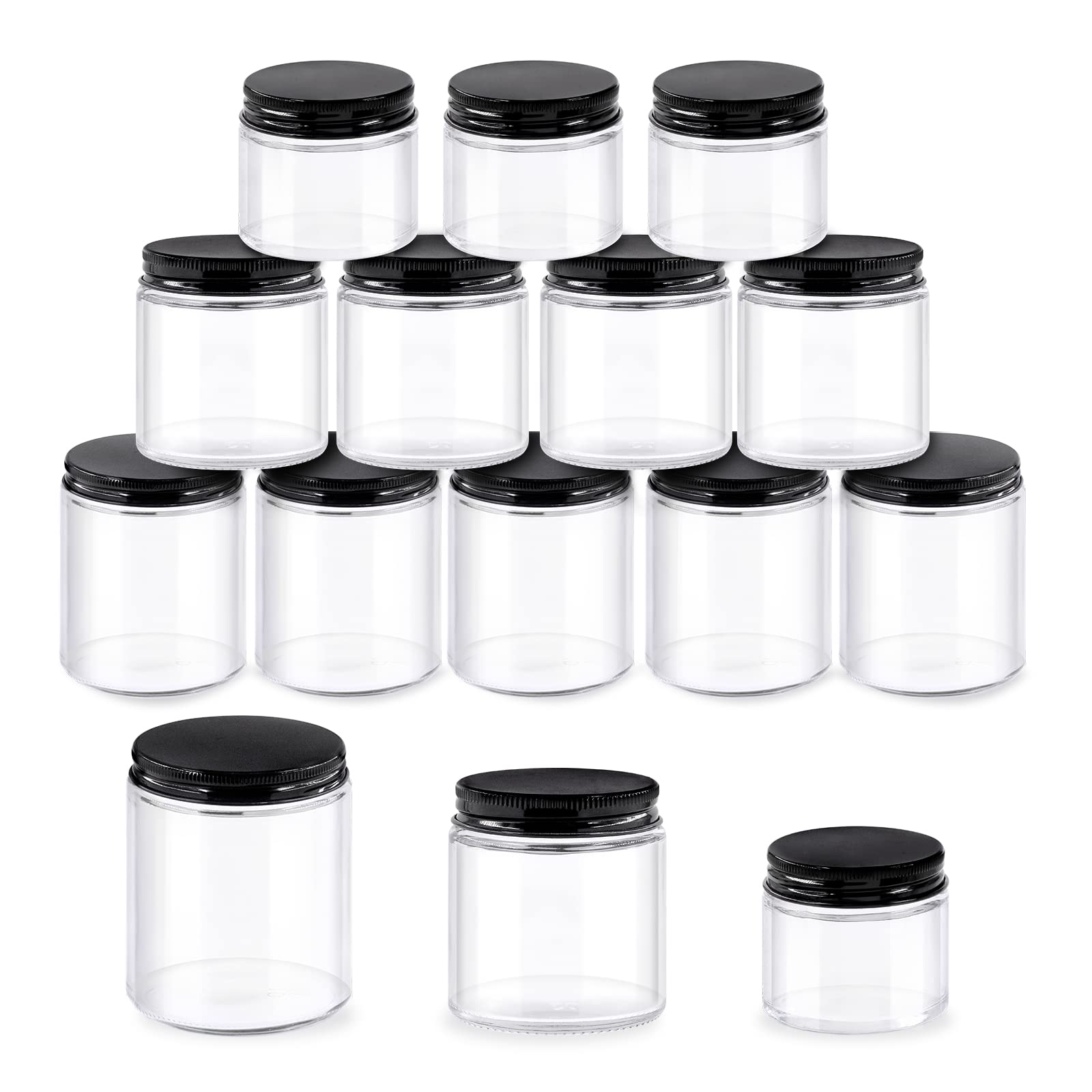 Glarks 12 Pack 2oz 4oz 8oz Glass Jars with Lids, Round Clear Glass Jars with Inner Liner and Black Lids for Storing Creams, Beauty Products, Cosmetic, Lotion and Ointments