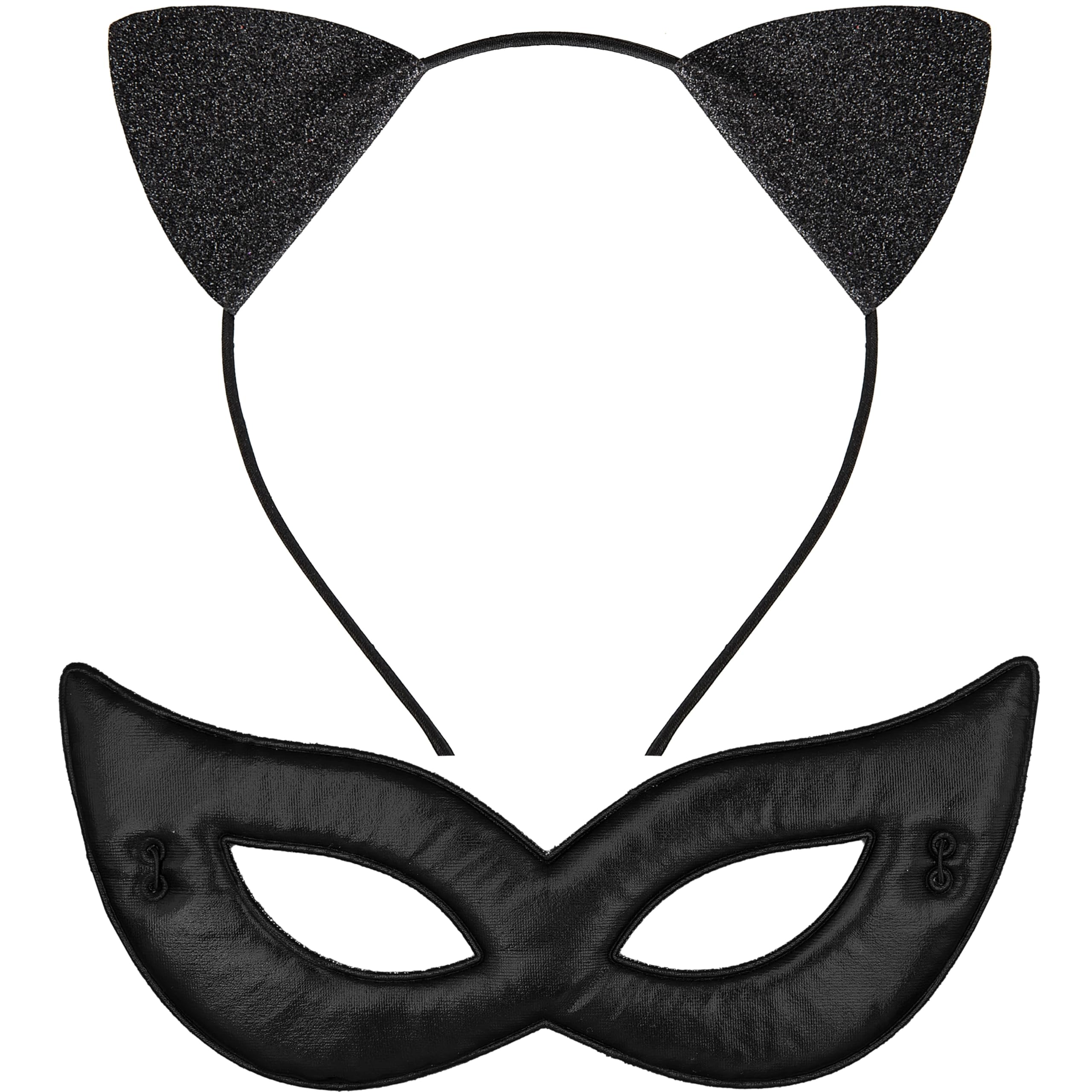 Glitter Cat Ears Headband Halloween Fancy Dress Cat Woman Hairband Cosplay with Cat Mask(Black)