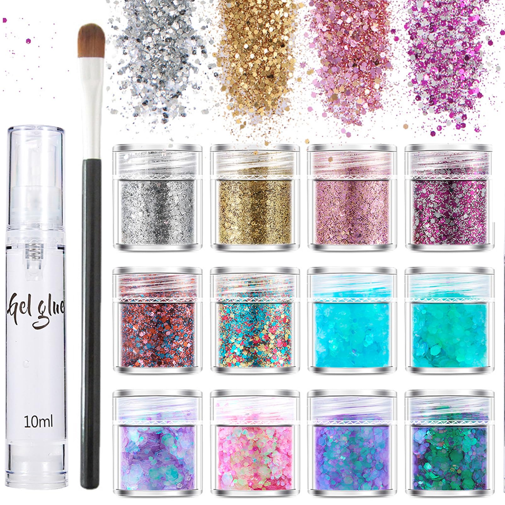 Glitter for Face, 12 Colors Chunky Holographic Body Glitter, Multi-Colored Face & Body Glitter, Face Glitter Makeup Set, Chunky Face Glitter Gel Kit, Face Painting Glitter for Women