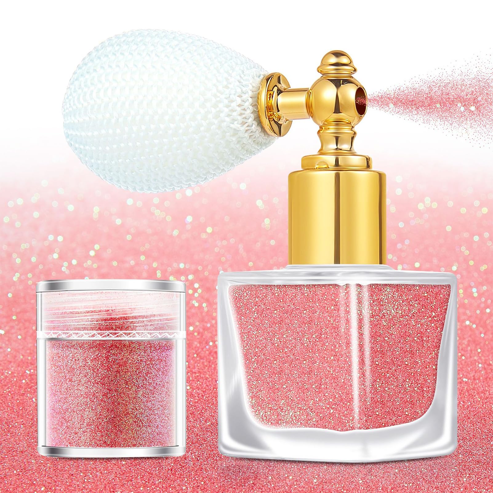 Sparkle Spray for Body, Pink Sparkles for Face, Pink Glitter Makeup, Pink Sparkly Shiny Glitter Spray, Spray on Glitter Makeup, Pink Fine Glitter for Clothes, Hair, Body and Face, Rave Accessories Versatile Shimmer Spray Versatile pink glitter for face could be used not just for hair, body, clothes, but also nice makeup glitter for eye as pink glitter eyeshadow or for lips to add shimmer to it. Long Lasting Pink Glitter Makeup The pink glitter spray would make your hair or body sparkle for up to 12 hours. Easy to Clean Our shimmer body spray would be smooth, fine, shiny, not sticky or greasy and fresh at the same time. A highlighter shiny glitter spray that’s easy to remove with daily clean steps. Widely Used Shimmer Spray A great sparkle spray for clothes, body, fabric, hair and face shimmer; Sparkle hair spray for all ages , all occasions and all skins. Ideal Gift This body glow shimmer is perfect for kids body spray, and nice hot pink glitter for women, girls, lady at her birthday, Valentine's day, Thanks giving, Christmas day, Mother's day or other special day as a nice gift. Recommended Way to Use: Fully shake the powder spray and squeeze the air out first ; Squeeze the air bag and spray glitter powder evenly; Repeat the steps above if more sparkly needed. Package Including:/b> 1*Hair Sparkle Spray for Halloween glitter 1*Glitter Spray Refill 1*Hair Shimmer Spray Tool
