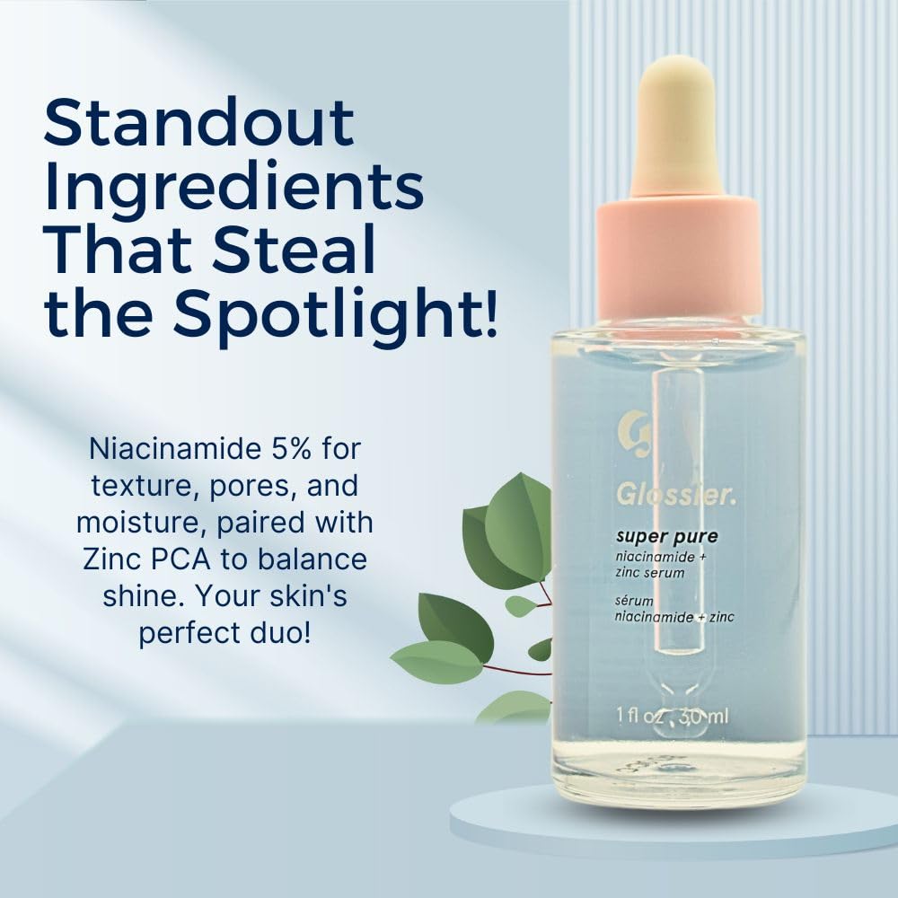 Glossier Super Pure Clarifying Face Serum with Niacinamide + Zinc 1 Fl oz / 30 mL