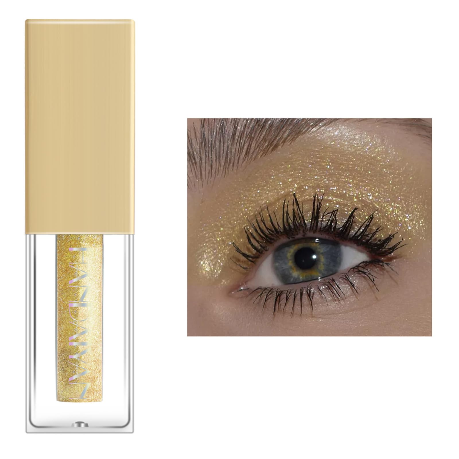 Gold Glitter Liquid Eyeshadow Eyelid Color,Highly Pigmented Yellow Liquid Shimmer Eyeshadow Eye Glitter Makeup,Dry Fast Long Lasting Eye Makeup Eye Look