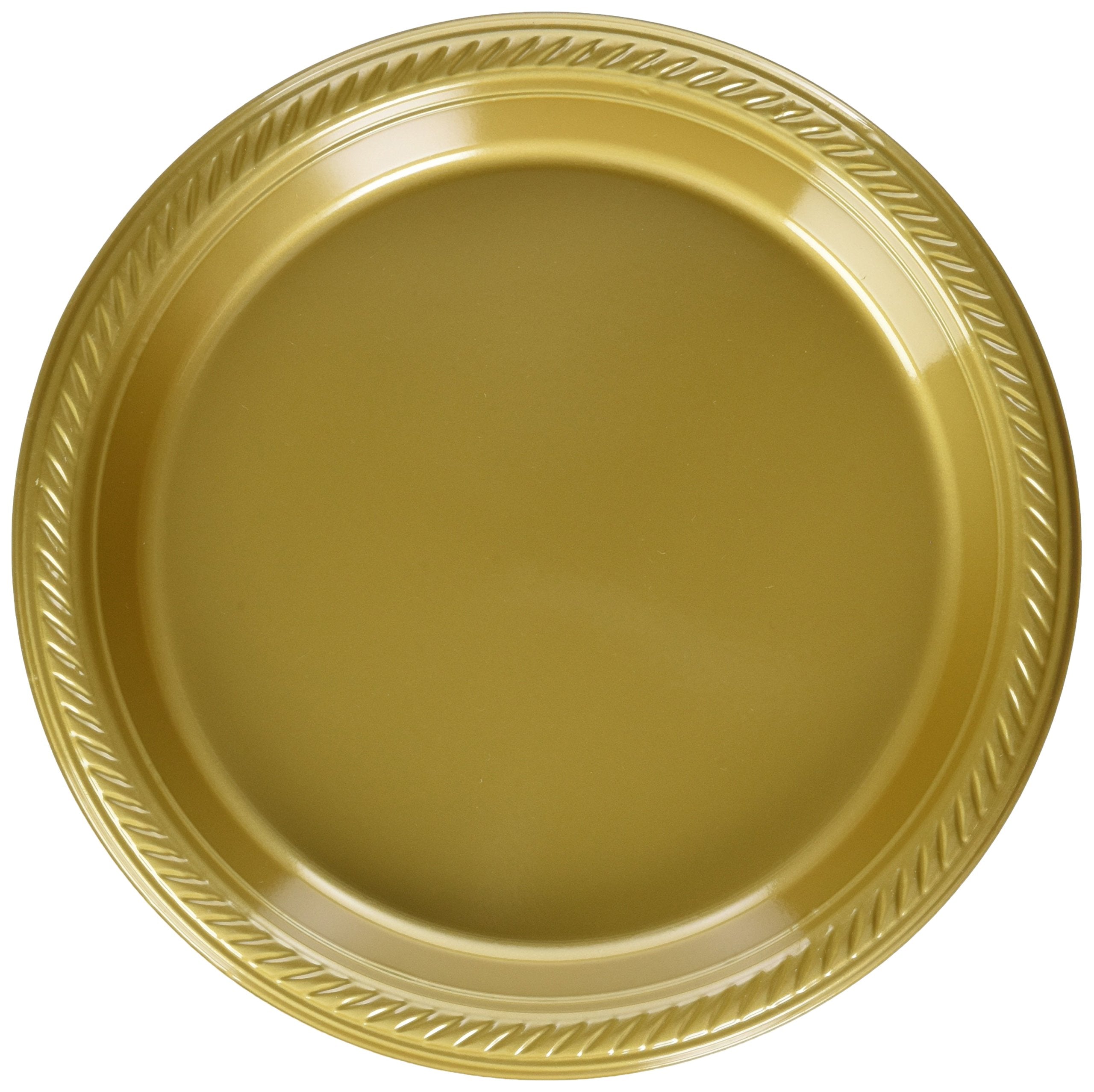 Amscan.inc is the largest designer, manufacturer, and distributor of decorated party goods and party accessories in the world, founded in 1947. Our company is also a leading supplier of gifts, home decor, and tabletop products as well as the primary source for gift wrap, gift bags, stationery, and licensed products. Our party offering is comprised of more than 300 innovative party ensembles including tableware, accessories, balloons, novelties, stationery, gift wrap, and decorations. Gifts that inspire and satisfy customer needs. Amscan-Big party pack gold plastic dessert plates. Amscan s big party collection of dessert plates are for the no-nonsense party thrower! this package contains fifty 7 inch plastic plates. Made in USA.. Amscan pledge to provide you the quality product at a reasonable price. If you come in, we will give you the reason to come back. Premium quality, Affordable, Value pack, Easy to use, Best for any party