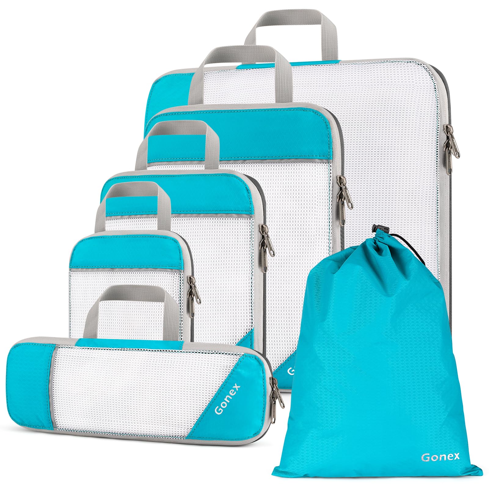 Gonex Compression Packing Cubes, 6 PCS Travel Luggage Packing Organizers with Mesh Extensible Suitcase Organiser for Travel, Blue