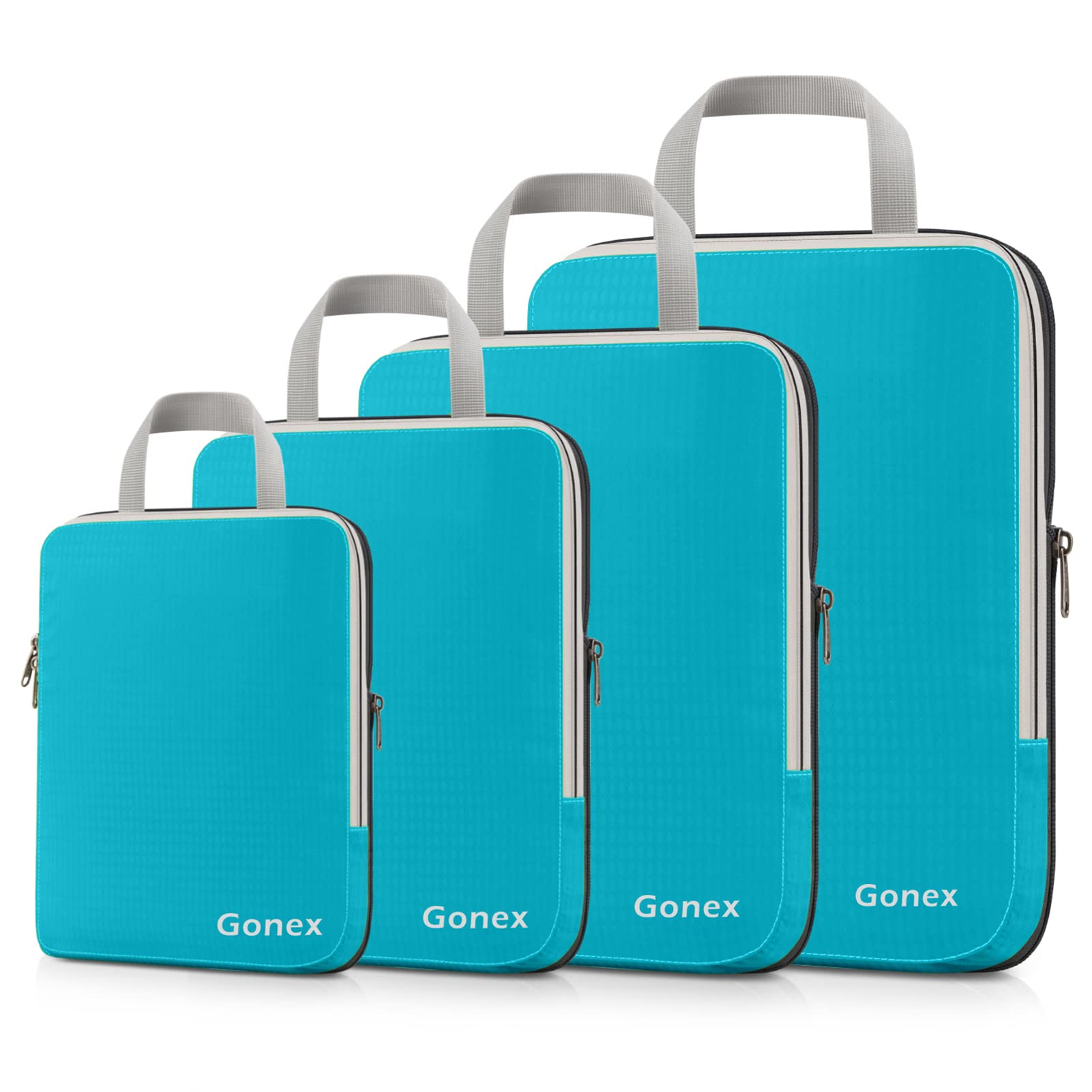 Gonex Compression Packing Cubes Extensible Organizer Bags For Travel Suitcase Organization Set of 4 Bags, Zipper, Turquoise