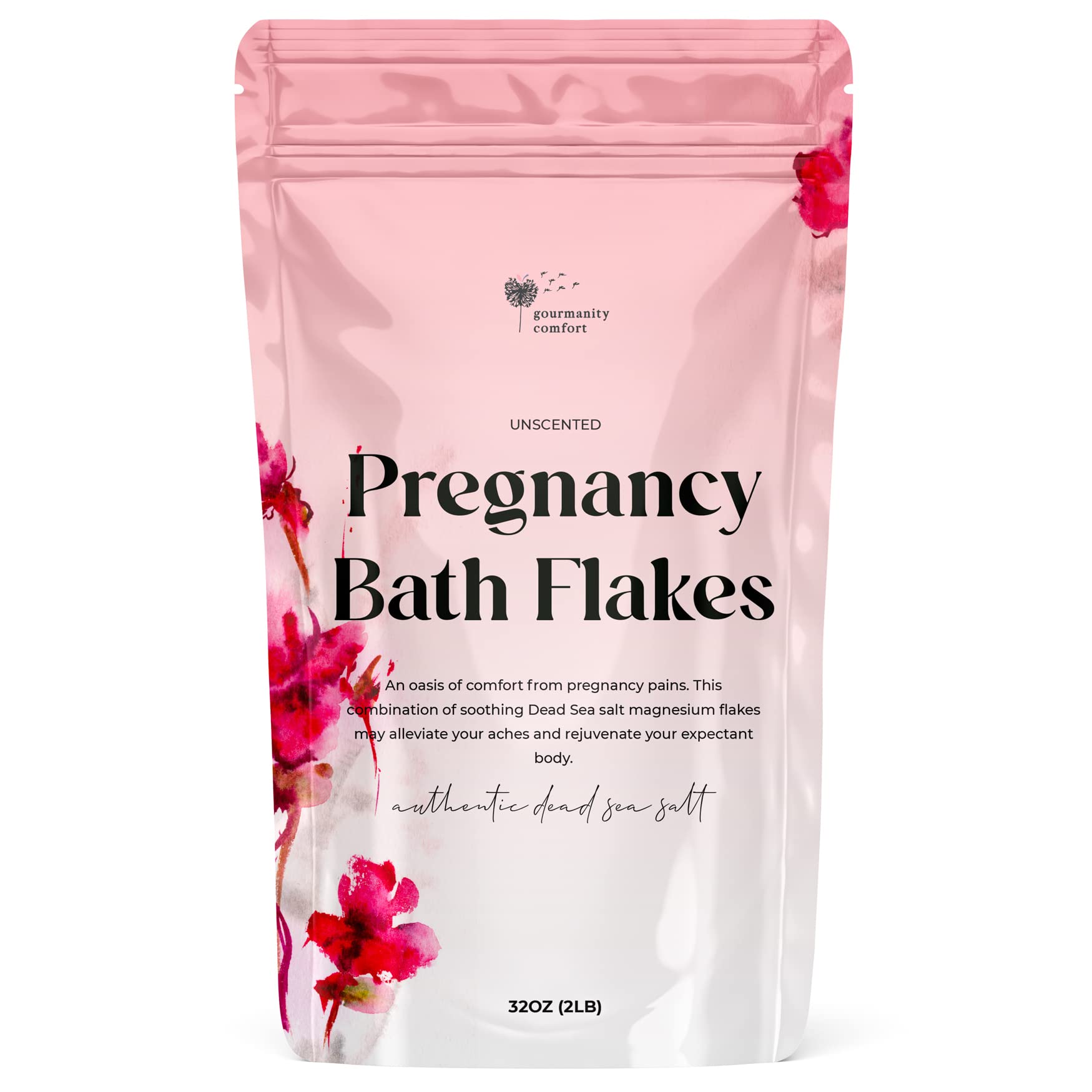 Gourmanity Comfort 2LB Unscented Magnesium Flakes for Bath, Bath Salts for Women Relaxing, Pregnancy Bath Soak Relief for Pregnant Women Aches & Pains, Resealable Bag of Dead Sea Salts [32oz/2LB]