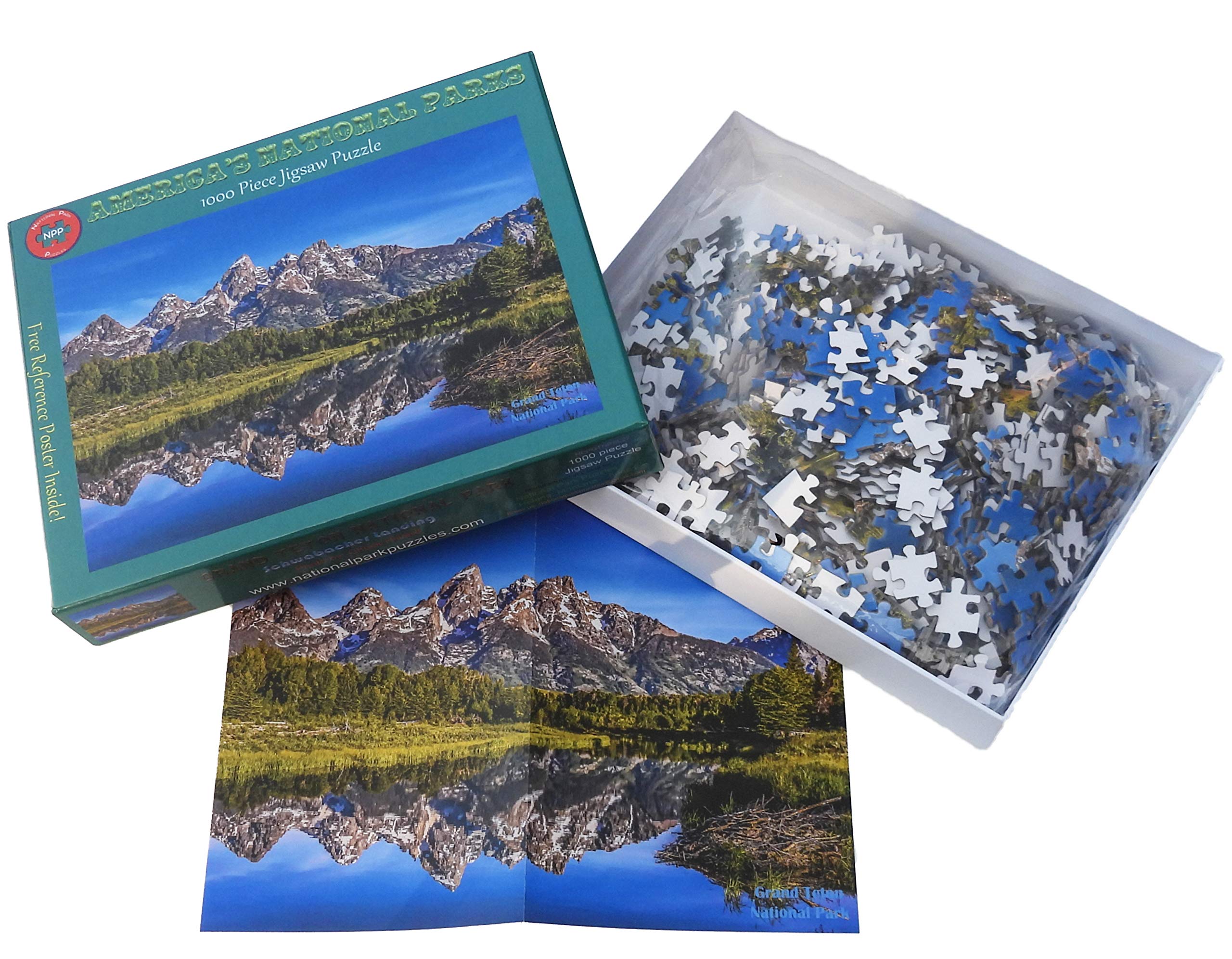 Beautiful image of the Teton mountains from Schwabacher Landing in Grand Teton National Park. Our 1000 piece puzzles are 27.6 x 19.7 inches , differing piece shape to produce an interlock so tight you can pick it up and flip it over without losing a piece, Grade A chipboard 1/16 inch thick for sturdy, durable pieces that wont bend or break, and a premium glossy print making a puzzle you will love to hang on your wall when you are done! Reference Poster is included in the box!