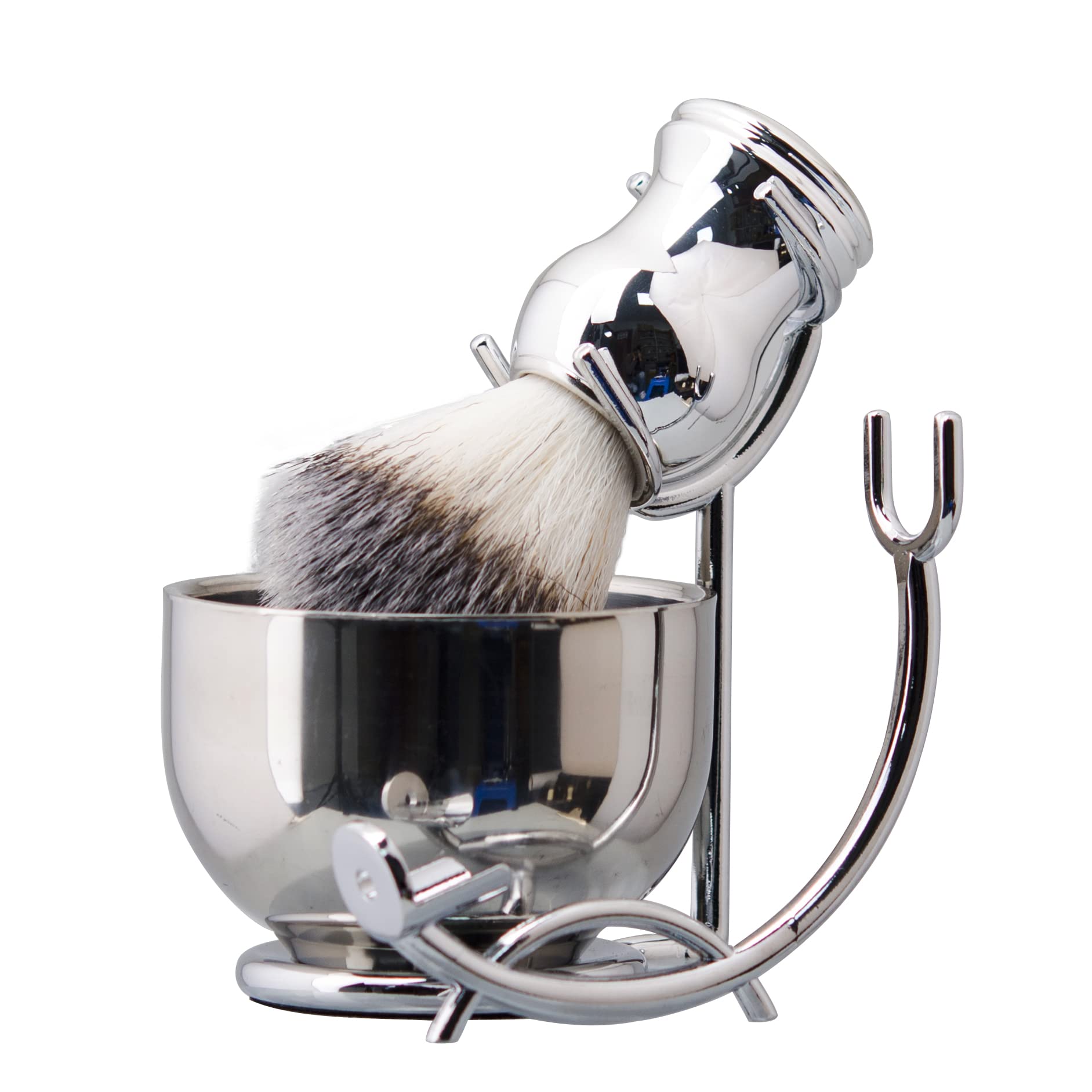 Grandslam Deluxe Shaving Kit for Men, 3 in 1 Shaving Set Includes Shaving Brush, Stainless Steel Shaving Bowl and Razor & Brush Holder, Silver Set