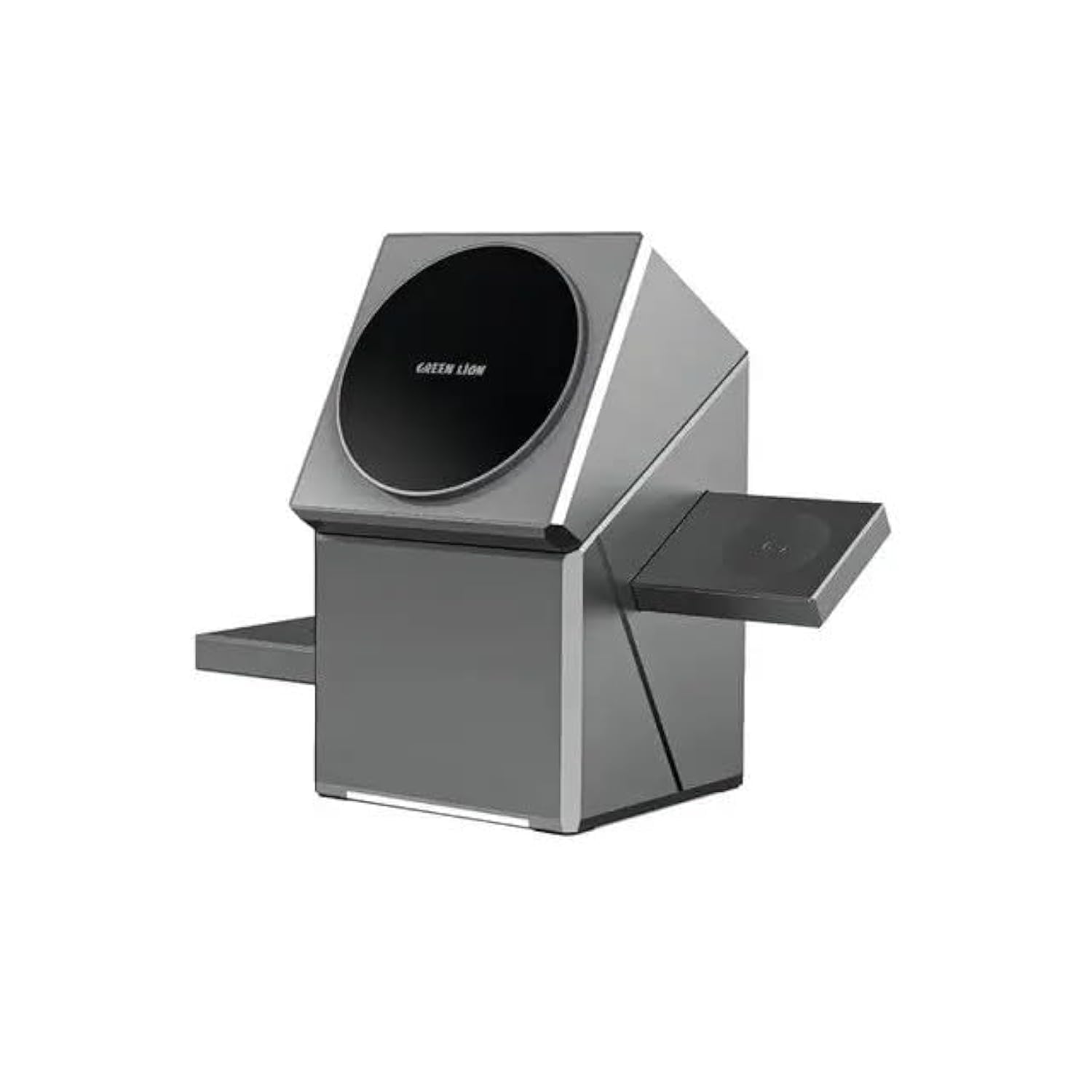 Experience seamless charging with the Green Lion 3-in-1 Magnetic Wireless Charger in elegant grey. This innovative charging solution features a powerful N52 Super Magnet that securely holds your devices in position while delivering efficient wireless charging. The sophisticated pop-up design with auto-rotation capability allows you to charge your device from virtually any angle, offering unparalleled convenience and flexibility. With its 1800mAh battery capacity, this charger ensures reliable fast charging performance for your compatible devices. Crafted from premium ABS material, the charger combines durability with sophisticated aesthetics. The Type-C power supply interface provides modern connectivity, while the thoughtfully engineered design makes it a perfect addition to any desk or nightstand. The sleek grey finish complements any setting, making it both a functional charging solution and a stylish accessory for your space.