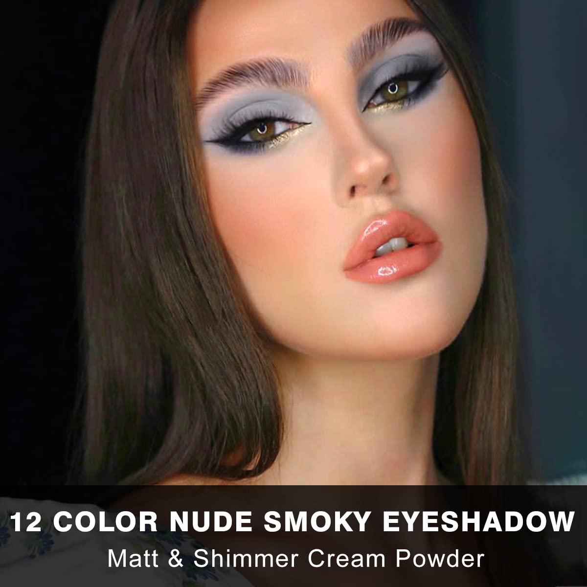 Grey brown Eyeshadow Makeup Palette Neutral ,12 Color Matte Shimmer Natural Nude Naked Smoky Eye Shadow Palettes with Mirro,Long Lasting Waterproof Smooth Eye Shade Daily,Talc Free For Sensitive Skin
