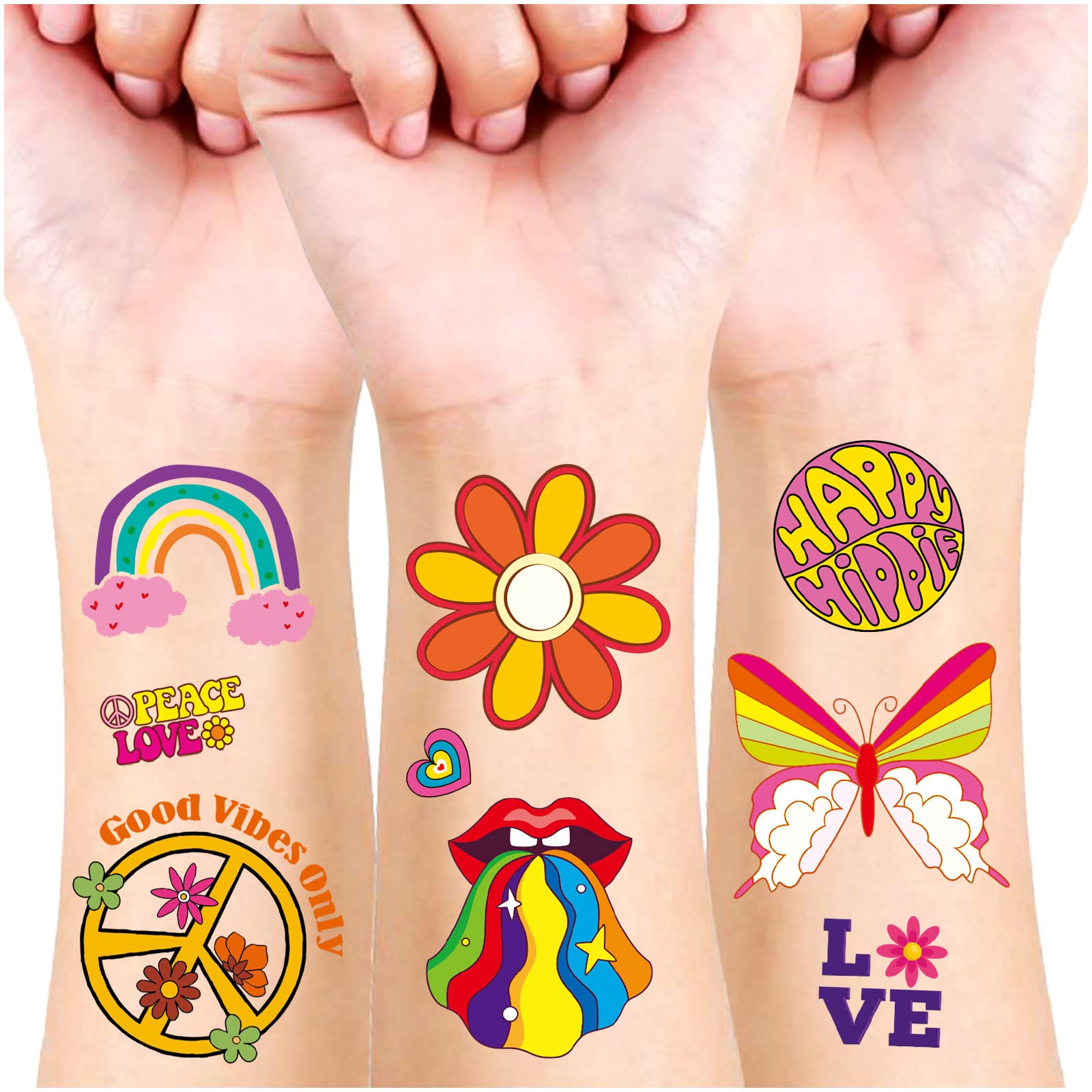 Groovy Flower Temporary Tattoos 560 Pcs Birthday Party Supplies Decorations Tattoos Stickers Party Favors for Kids Girls Boys Gifts School Prizes Butterfly Stickers Hippie Retro 60s 70s Party Favor