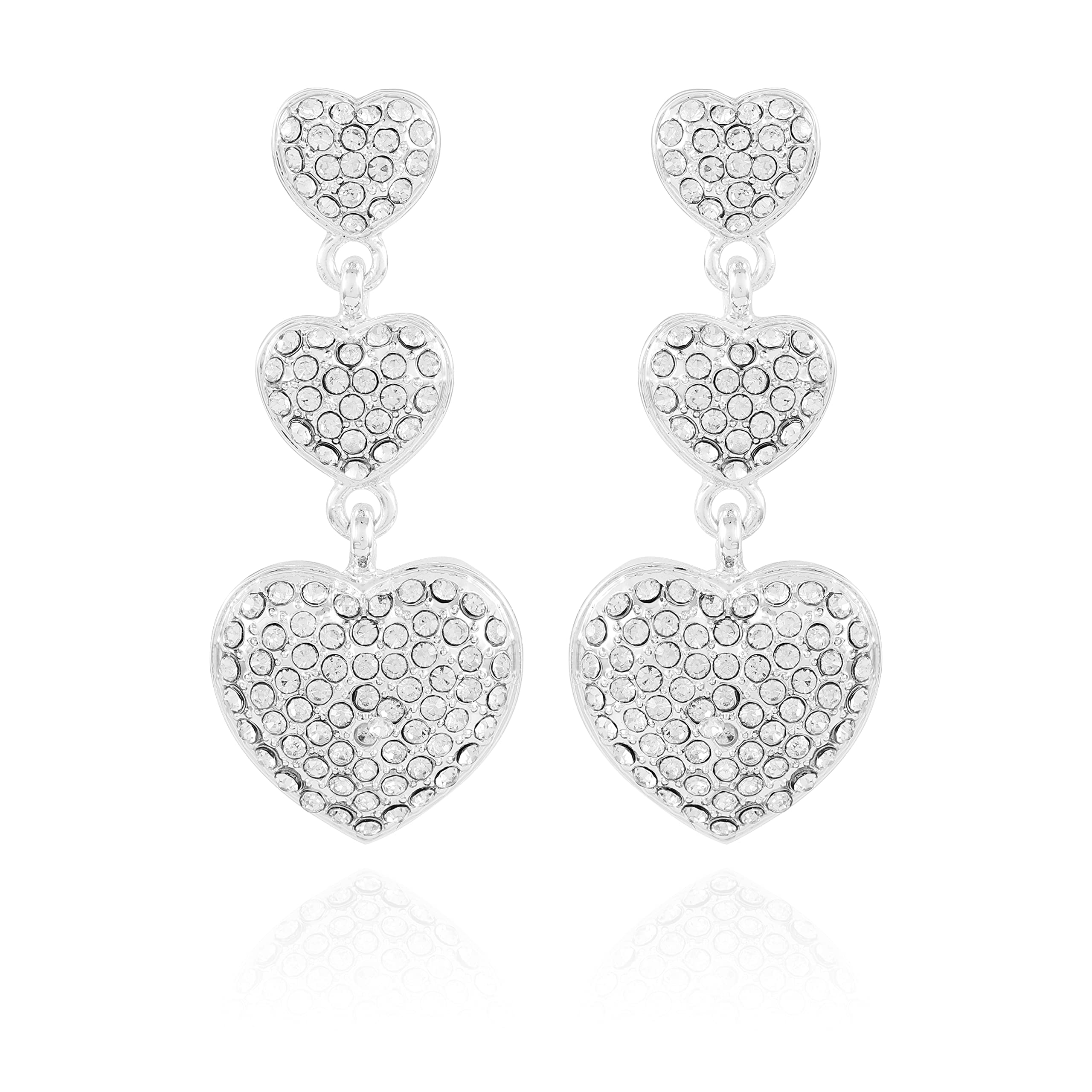 Add a touch of glamour to any outfit with these stunning GUESS Silvertone Triple Pave Crystal Glass Stone Heart Linear Dangle Drop Earrings. Crafted with high-quality materials and a keen eye for detail, these earrings are designed to capture the attention of everyone in the room. The triple pave crystal glass stones add a dazzling sparkle to the heart-shaped design, which hangs elegantly from the earlobe. Perfect for a night out on the town or a special occasion, these earrings are sure to become a treasured addition to any jewelry collection.