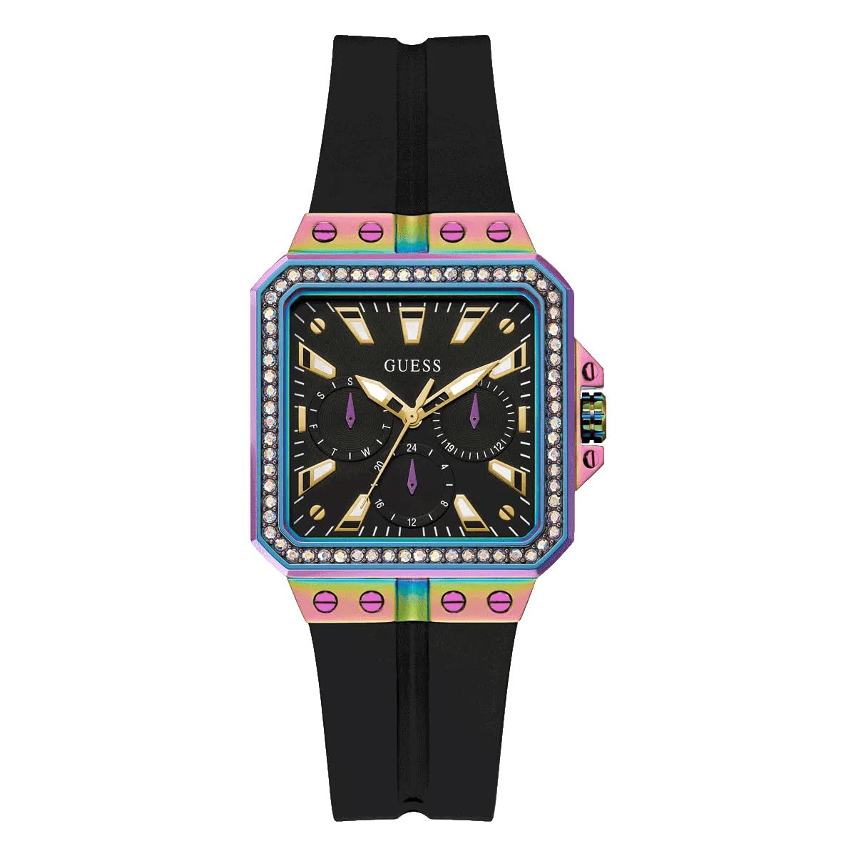 GUESS Women's 34mm Watch - Black Strap Black Dial Iridescent Case