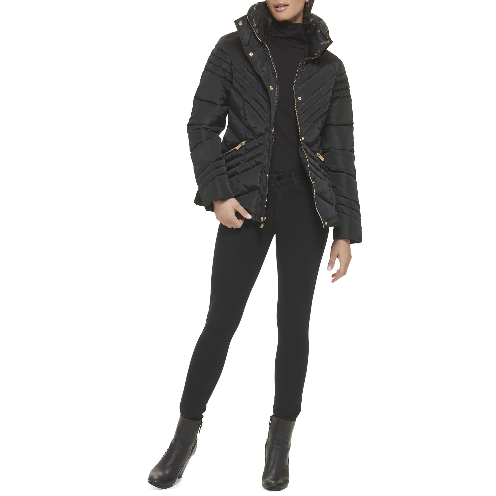 GUESS Women's Midweight Puffer Jacket, Cold Weather Black, Large
