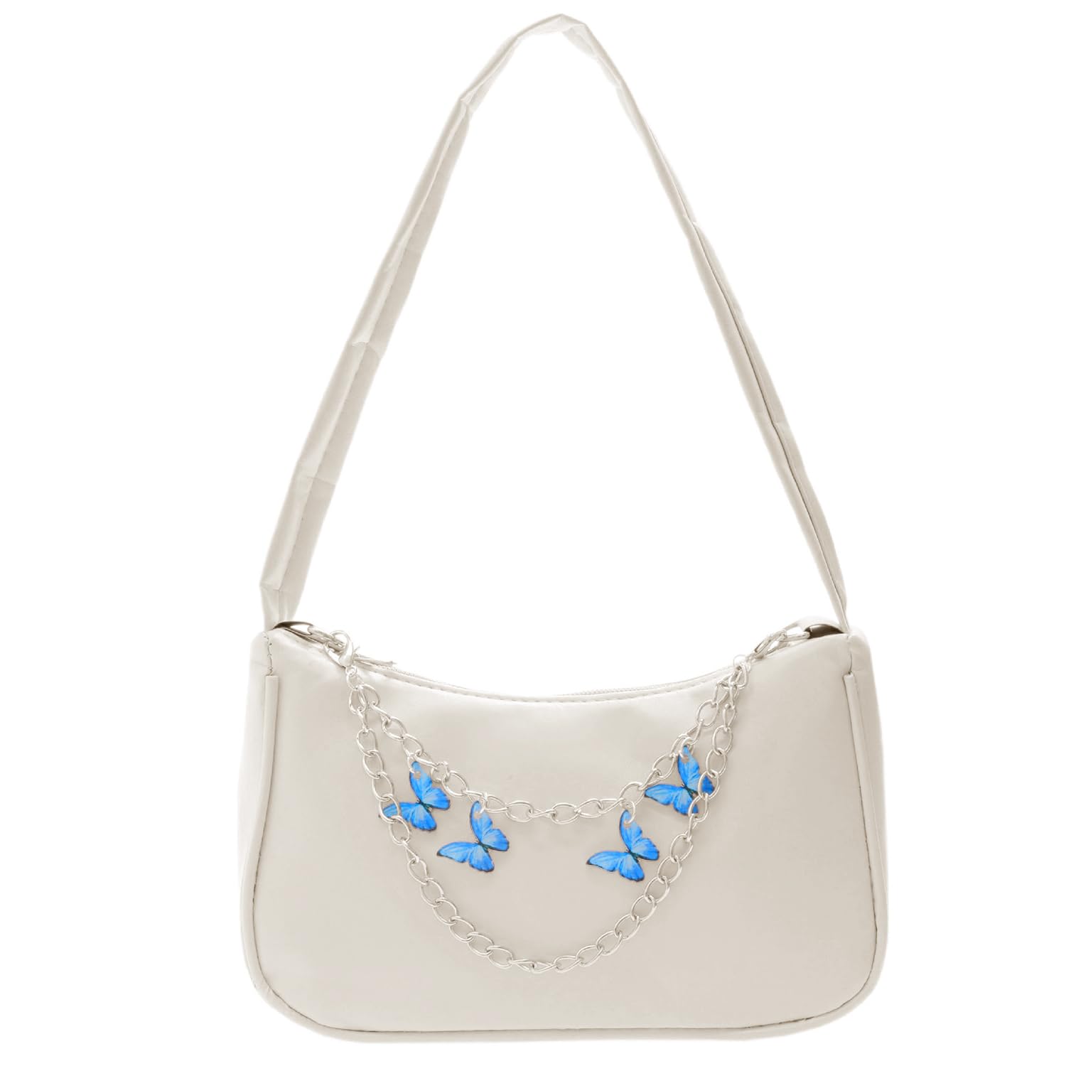 1. A metal chain with butterfly ornaments is connected to the zipper of the messenger bag, which is full of fashion.