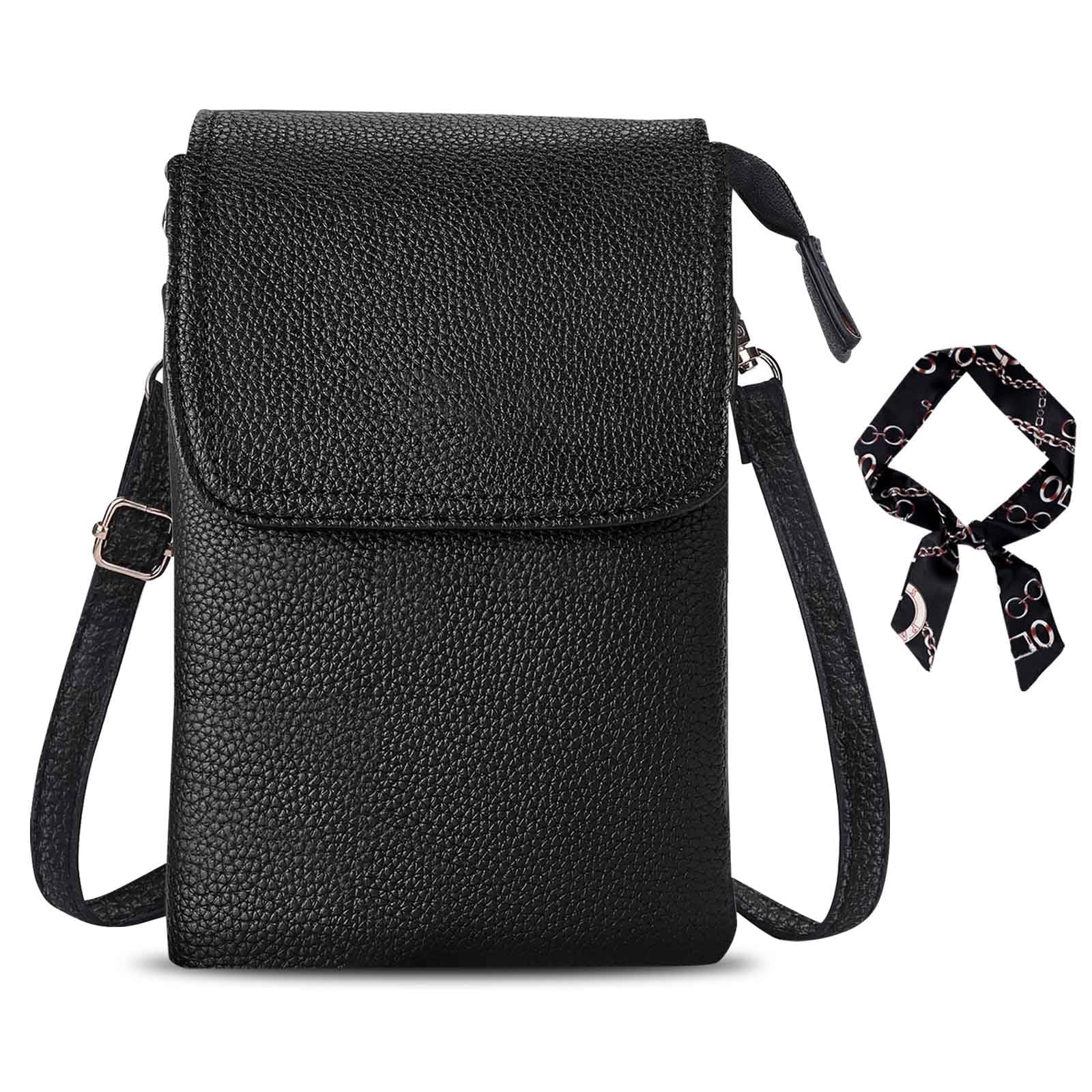 GWAWG Leather Crossbody Bag, Cellphone Wallet, Small for Women Mini Shoulder Purse with Long Strap and Key Ring and Scarves Fit 8 Plus or Phone Less 6.5 Inch