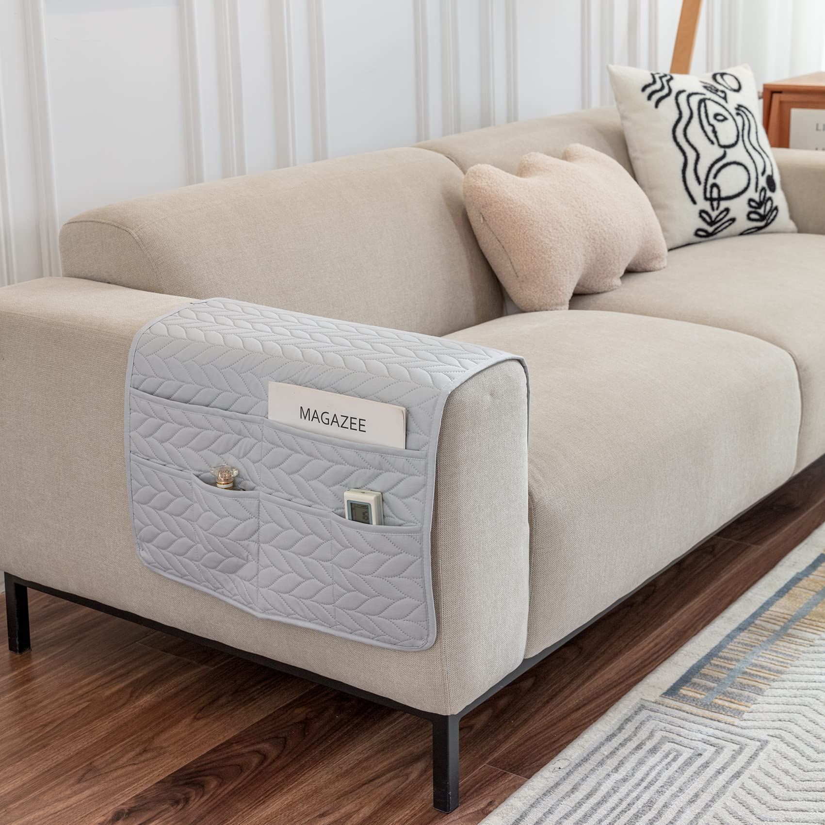 GYHH Sofa Armrest Covers for Arms, Armchair Arm Protector Cover, Waterproof Anti-Slip with 6 Pockets Sofa Arm Cover for TV Remote Control, Pets, Cats (Light grey,50 * 90cm)