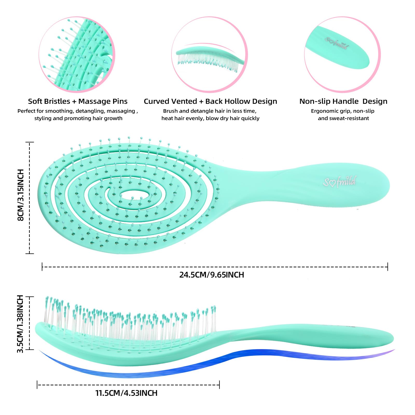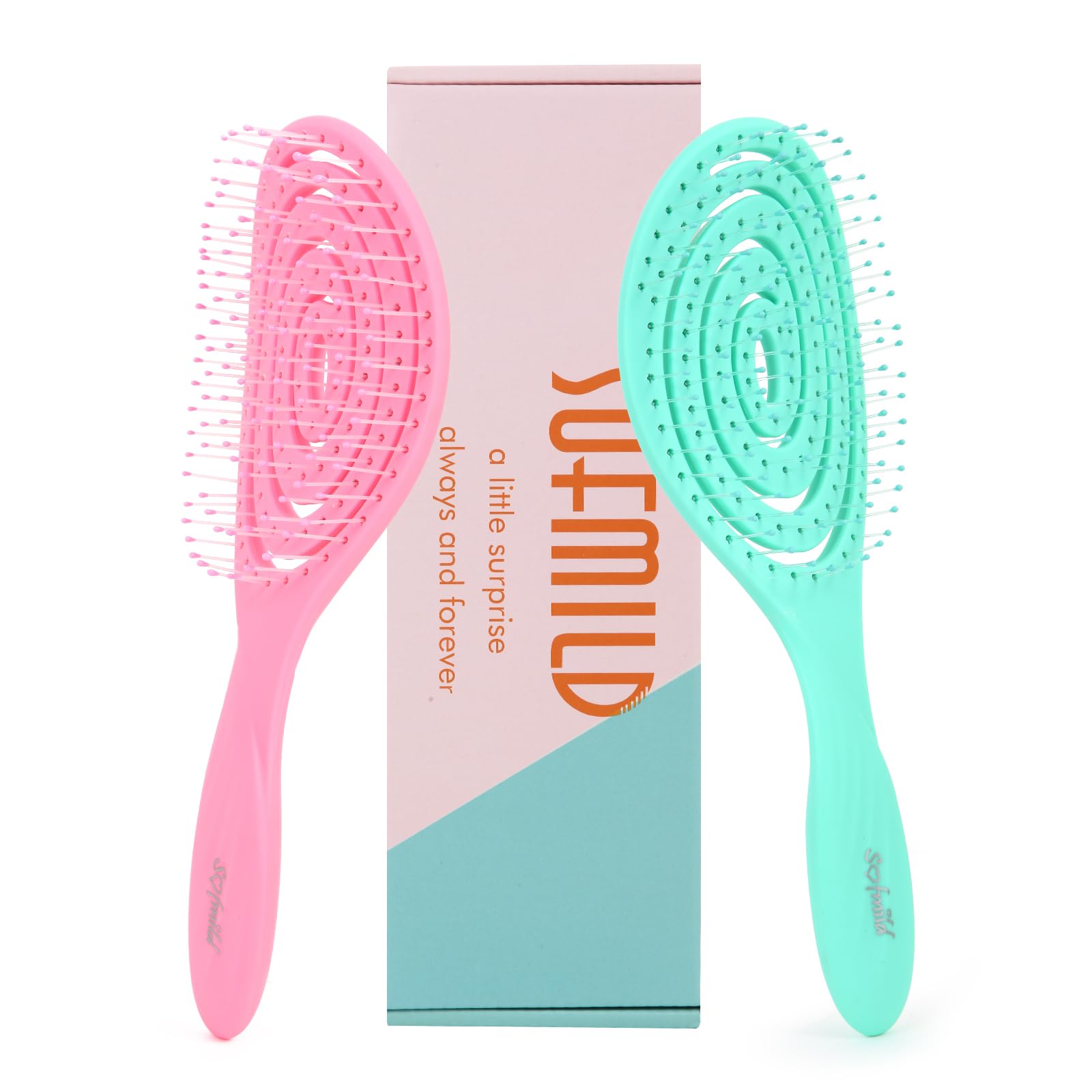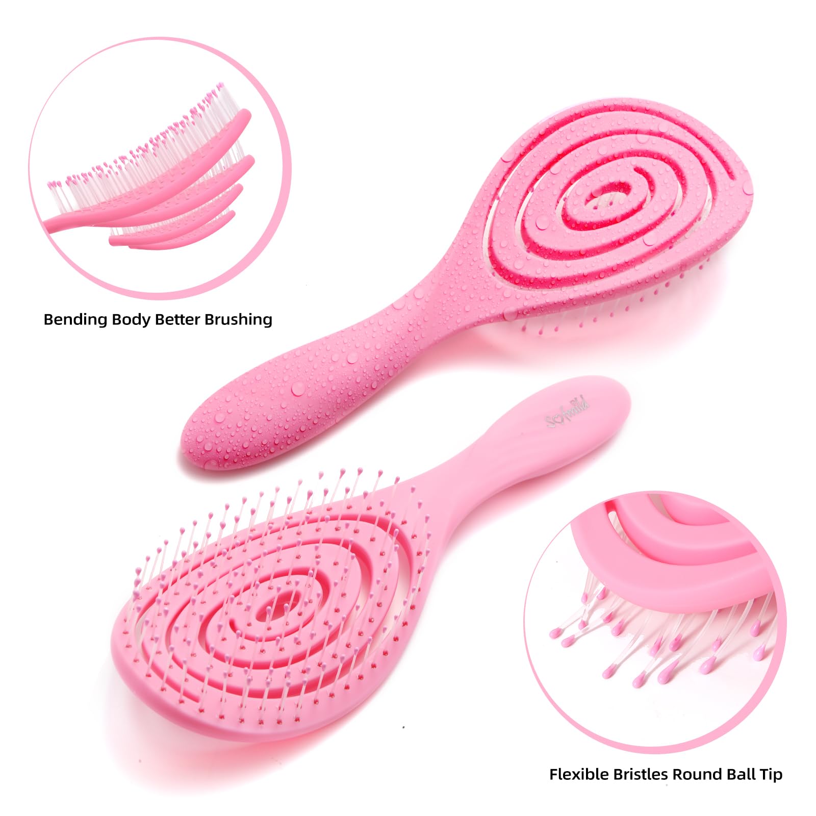 Hair Brush, 2 Pcs Detangling Brush 100% Bio-Friendly Detangler Brush with Soft Bristles for Curly, Straight, Black Natural, Women, Men, Kids Wet and Dry Hair, Glide Through Tangles Knots with Ease