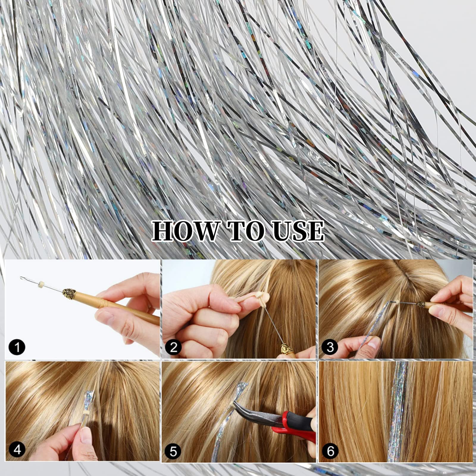 HAIR PLACE HEALERS 200 Wires with vehicles, foamy bright hair tinsel kit, heat -resistant glitter spiritual hair extensions 48 INC for Women Girls
