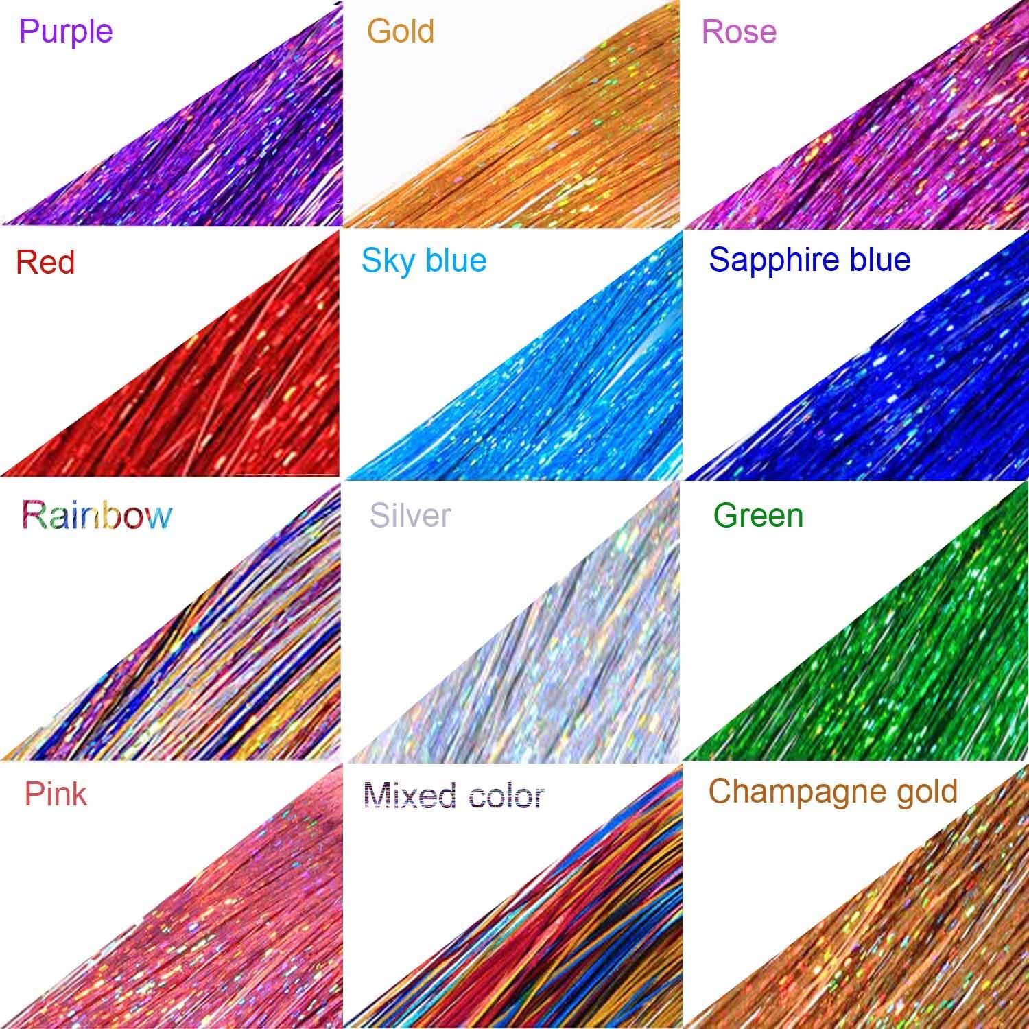Hair Tinsel Kit (48 Inch,12 Colors, 3000 strands), Fairy Tinsel Hair Extensions with Tools - Glitter Hair Tinsel Kit Heat Resistant Accessories for Girls Women Kids Christmas New Year