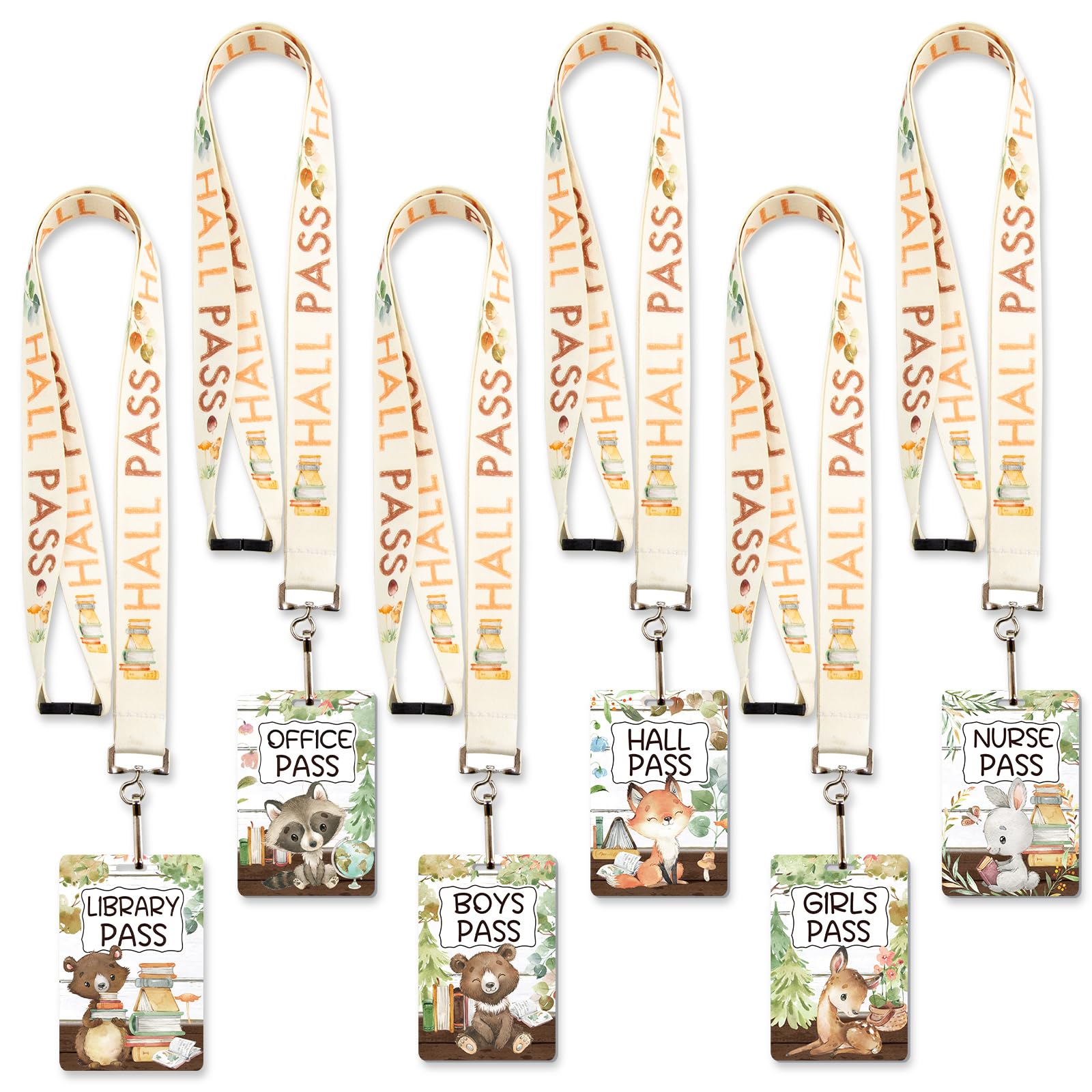 Hall Passes Lanyards Set of 6 School Classroom Woodland Animal Watercolor Decor Library Office Nurse Boy Girl