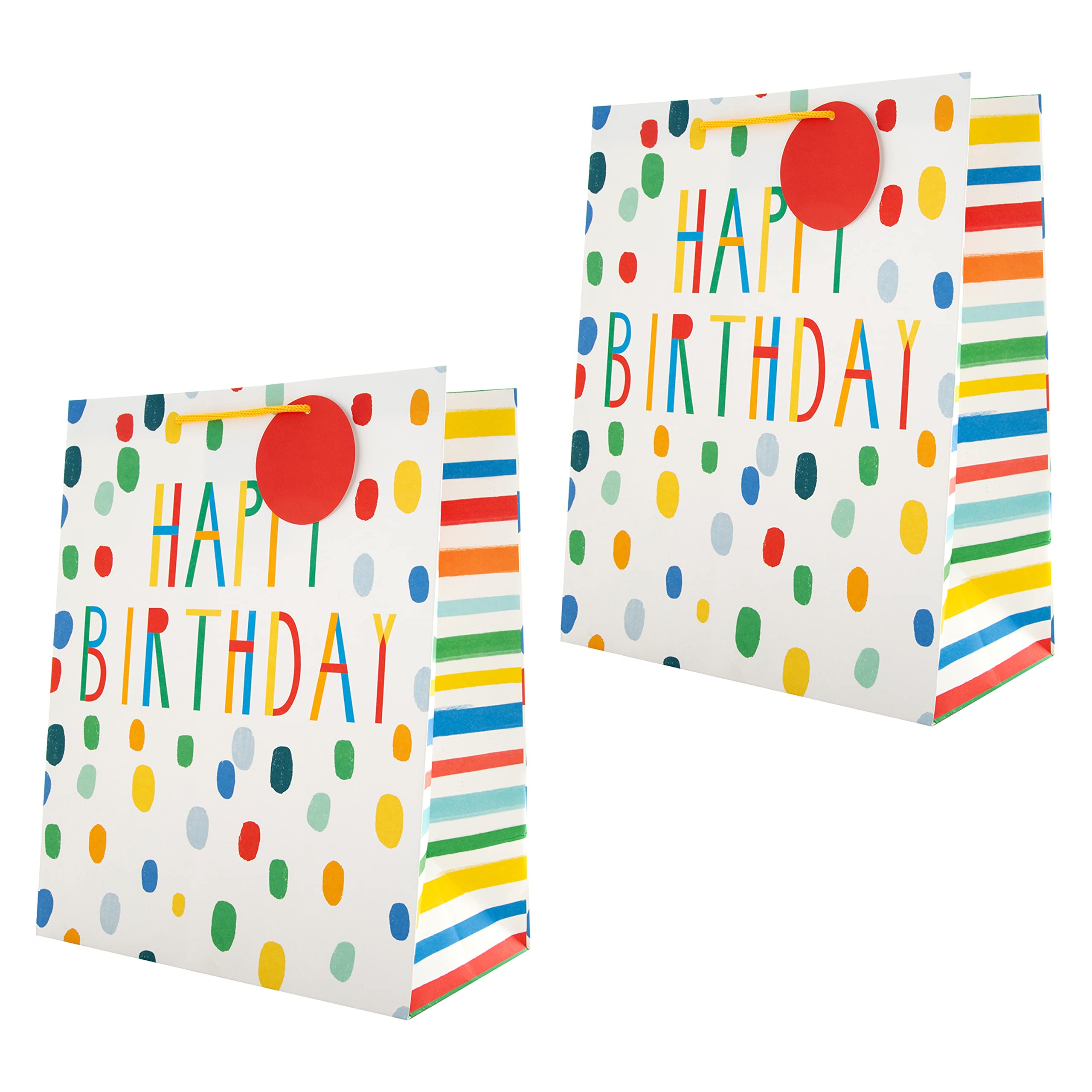 Hallmark Birthday Gift Bag Bundle - 2 Large Gift Bags in 1 Bright Colourful Design