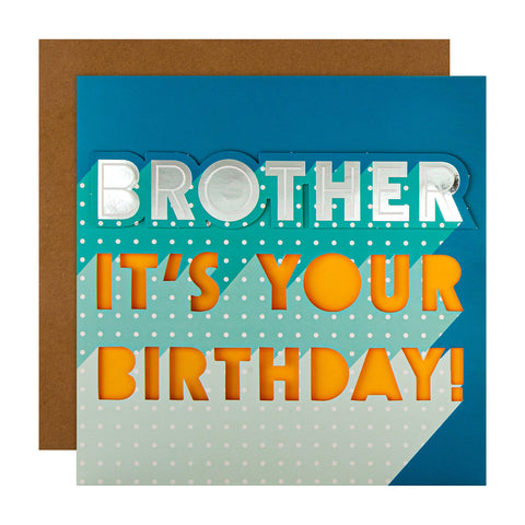 Help your Brother have a bright and bold Birthday, with this contemporary text based card; from Hallmark. Fully recyclable and made using material from well-managed; FSC-certified forests and other controlled sources. Features silver foil details, die cut elements and a 3D add on; Comes complete with a co-ordinating Brown Kraft; Hallmark branded envelope. Message Inside Reads: Have a good one. Measures: 19.8cm by 19.8cm; Within UK 'Large Letter' Size Limits