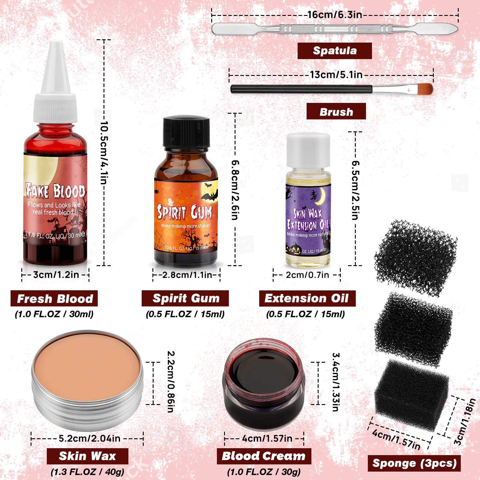 --Halloween cosplay zombie SFX all in one makeup kit for realistic results-- Are You Ready To Stand Out And Impress At Halloween Parties? Our Halloween special effects makeup set is perfect for Halloween Makeup, Cosplay Makeup, SFX Makeup, Carnivals, Stage Performance, TV Show Special Effects, Zombie Cosplay, Haunted House and more. Package Include: Fake Blood x 1 Sticky Blood Cream x 1 Scar Wax x 1 Spirit Gum x 1 Extension Oil x 1 Spatula Tool x 1 Stipple Sponge x 1 Brush x 1