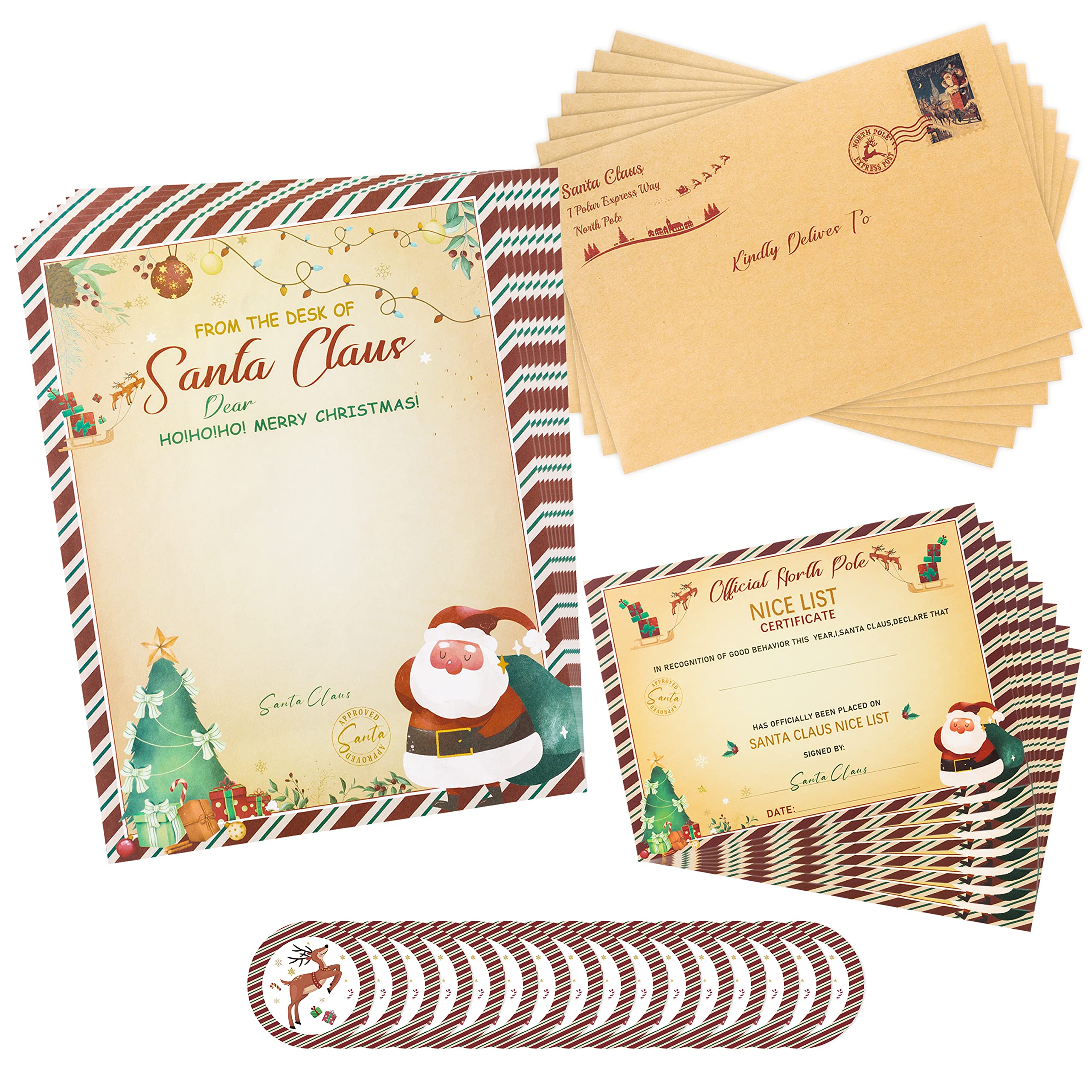 Haooryx 40pcs Christmas Postcards Bulk Christmas Tree Snowman Santa Claus Postcards Letter From The Desk Of Santa Claus for Holiday Students & Kids Activities Supplies Xmas Wish Party Favors