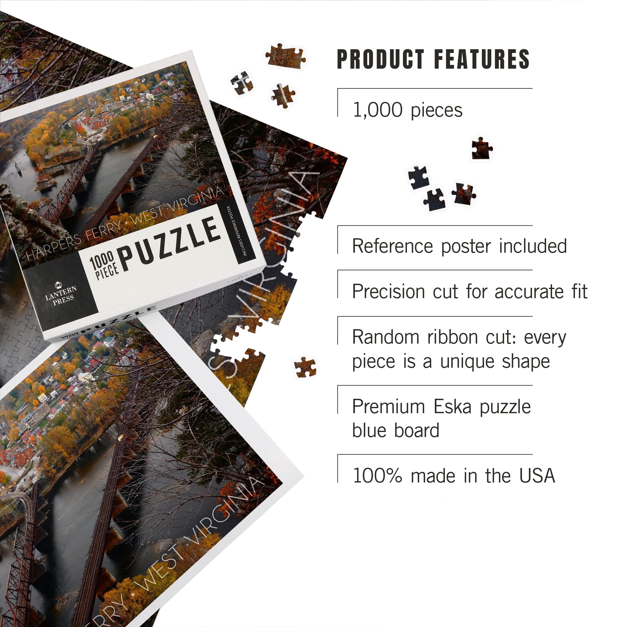 Harpers Ferry, West Virginia, Bird's Eye View (1000 Piece Puzzle, Challenging Jigsaw Puzzle for Adults, Made in USA)