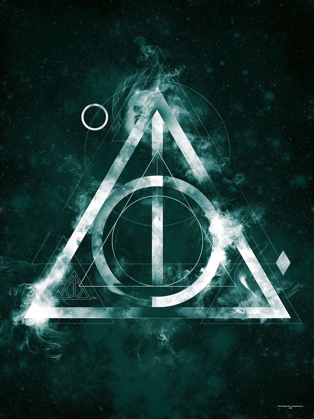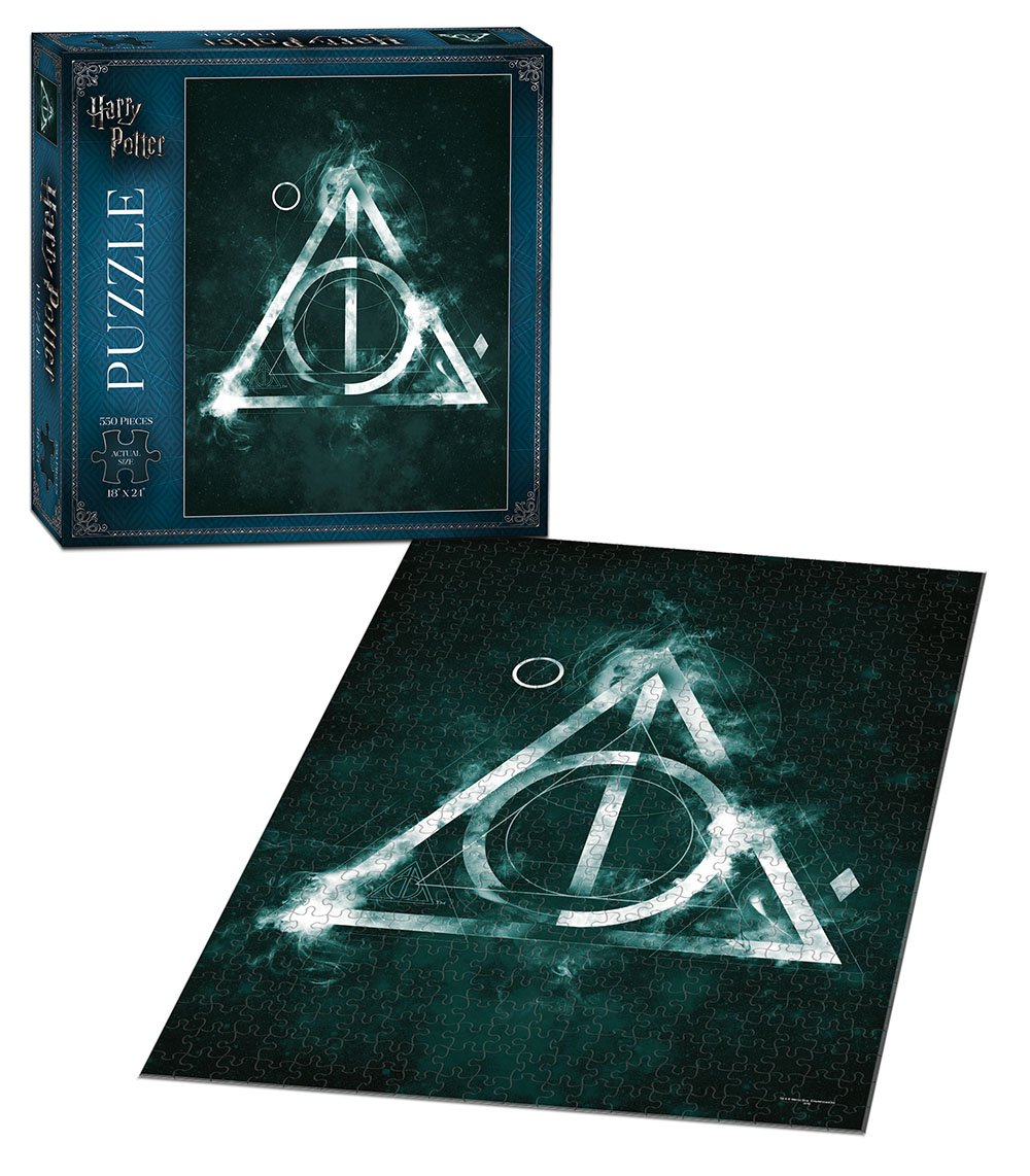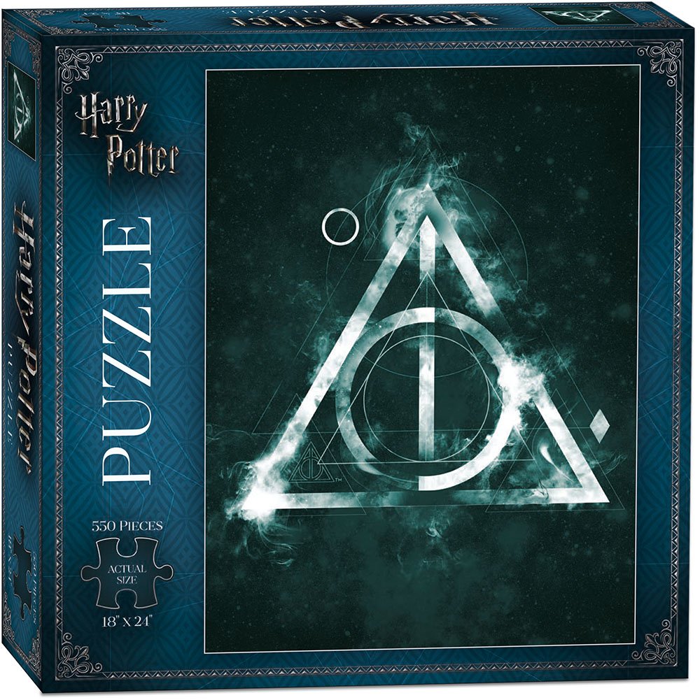 Piece together this challenging 550 piece puzzle representing the symbol of The Deathly Hallows.