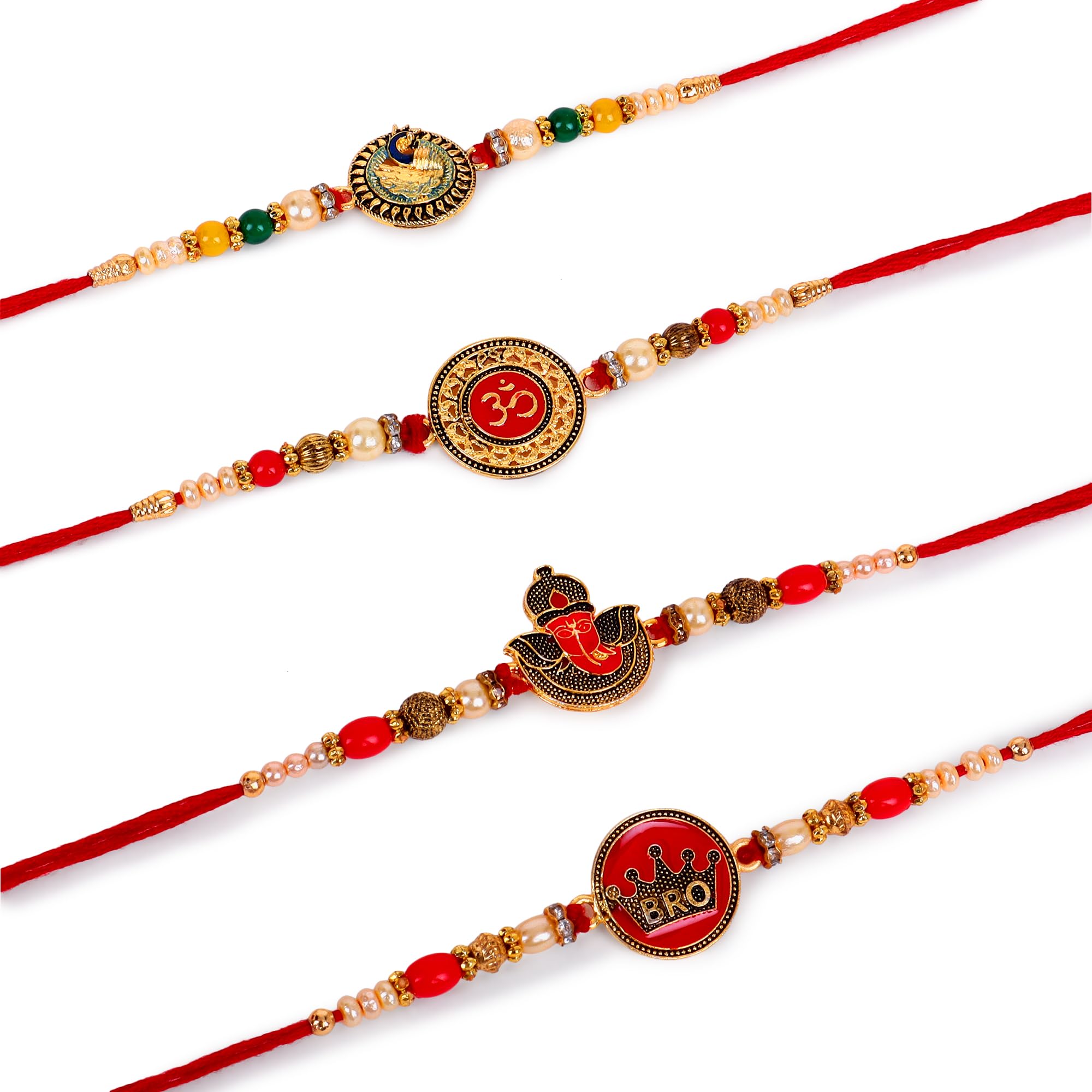 Hashcart Rakhi for Brother and Bhabhi With Gift Envelope Pack | Set of 4 Raksha Bandhan Bracelet for Kids, Boys, Bhaiya, Bhabhi, Sibling | Roli Chawal and Greetings Card Included