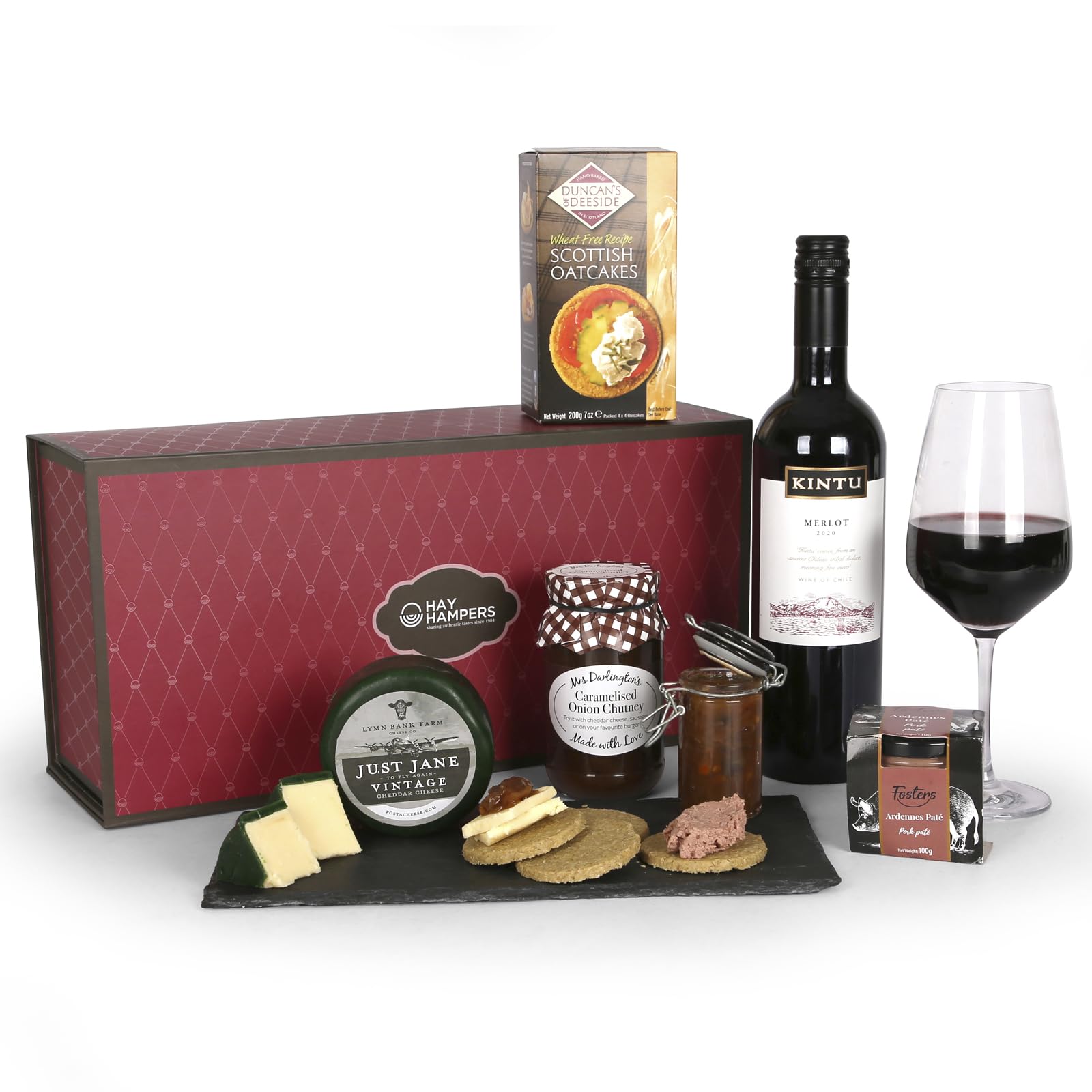 Hay Hampers Red Wine & Cheese Hamper - Wine Gift Set, Gifts for Women & Men, Hamper Gift for Couples & Parents