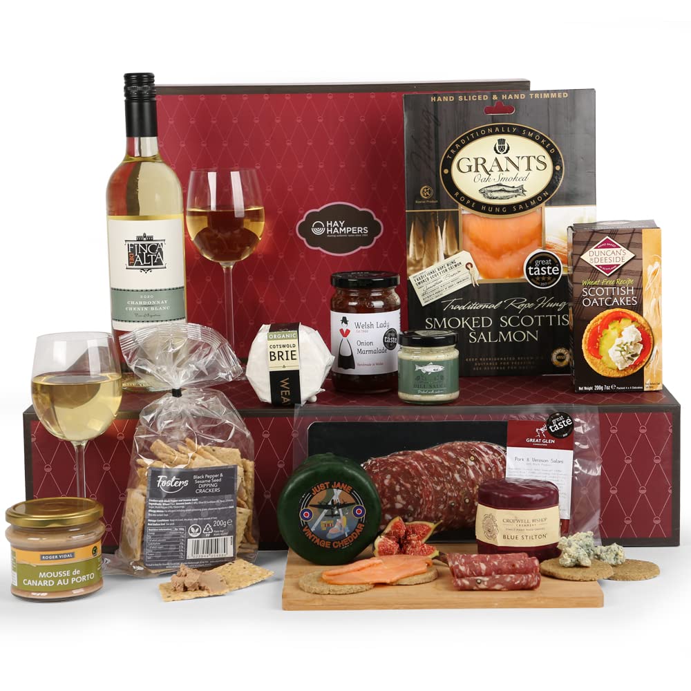 Hay Hampers White Wine, Cheese & Meats Hamper - Wine Hampers, Gifts for Women & Men, Hamper Gift for Couples & Parents
